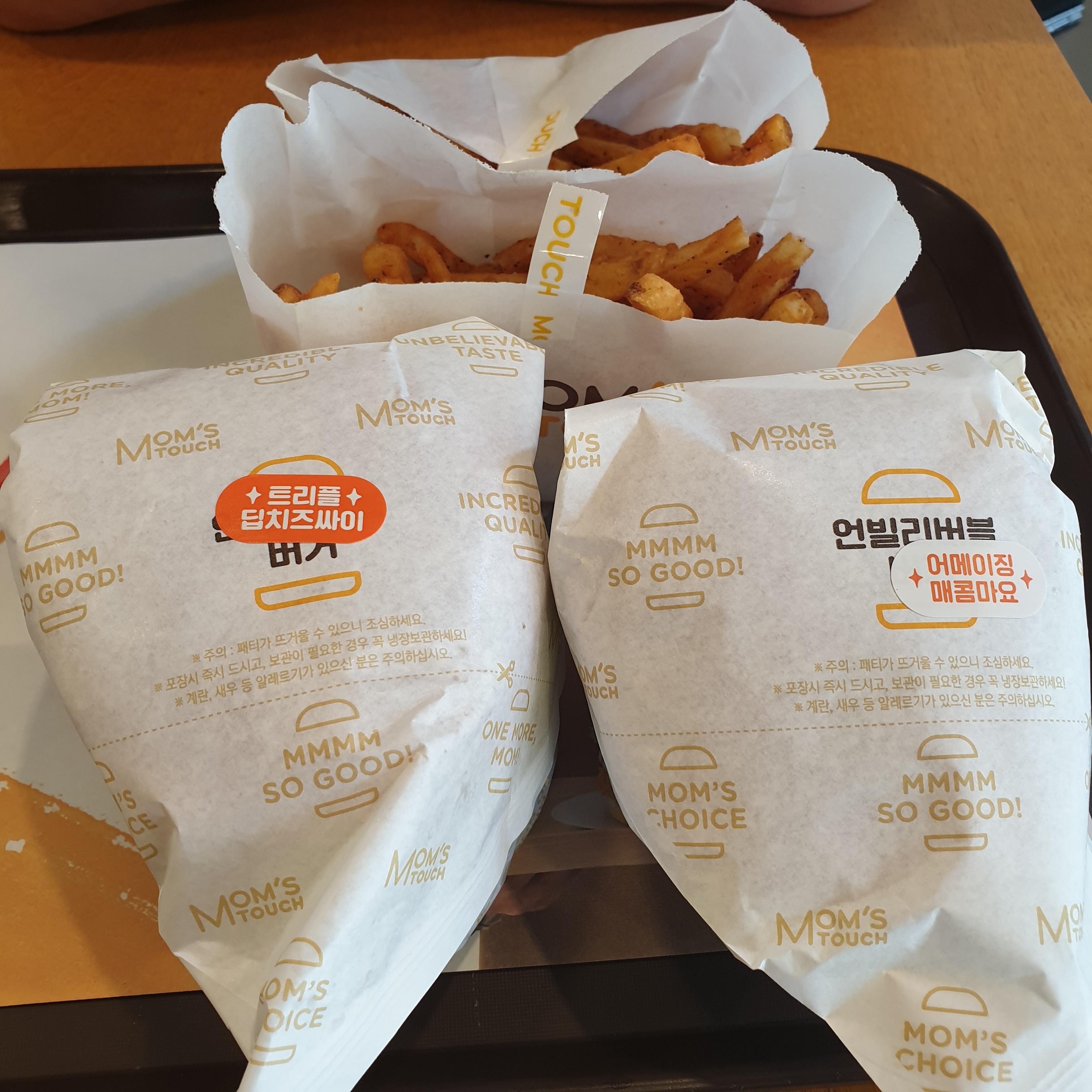 매장에서 갓 만들어져 나온 맘스터치 버거!