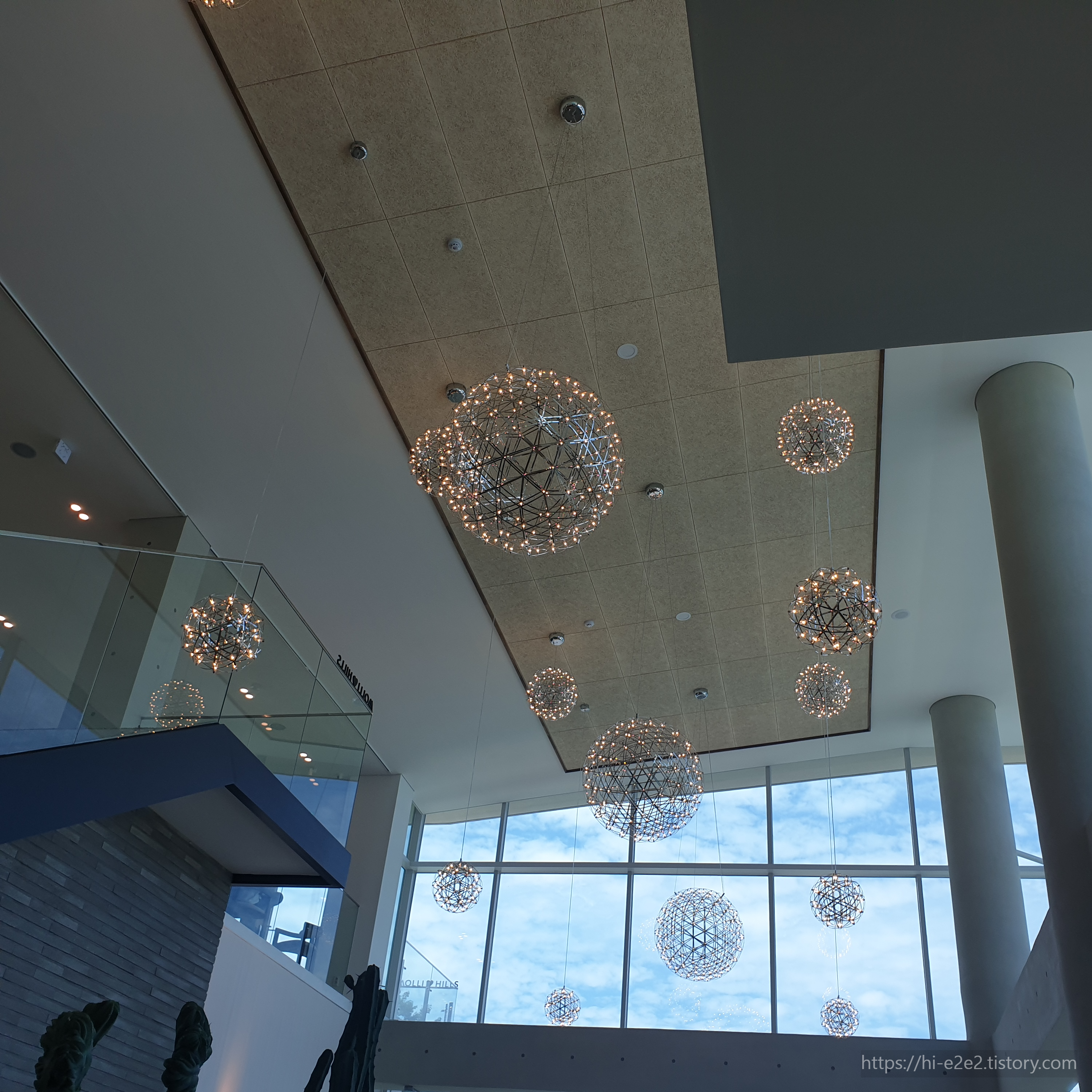 저 조명이 유리창을 비춰 꼭 불꽃놀이를 하는 것처럼 보였다.