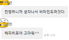 해피히포를 향한 격렬한 사랑을 보여준 빈이에게 감사인사로 전달드렸습니닷 캬캬