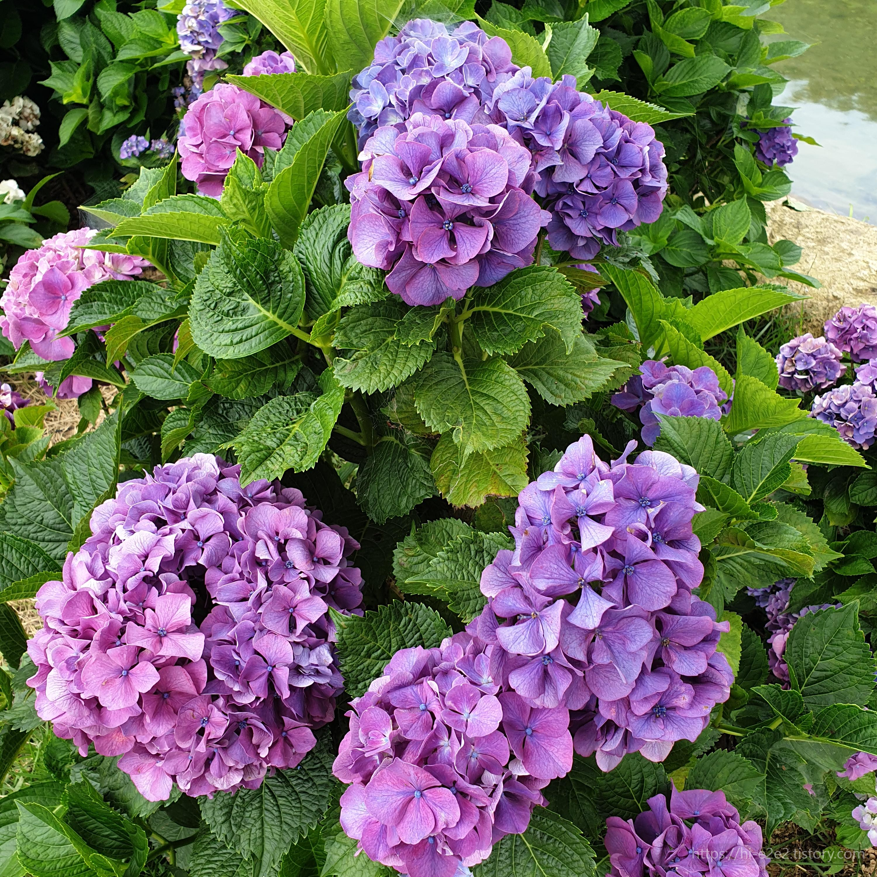오른쪽 아래에 있는 꽃은 수국이 아니라 다른 종이였는데