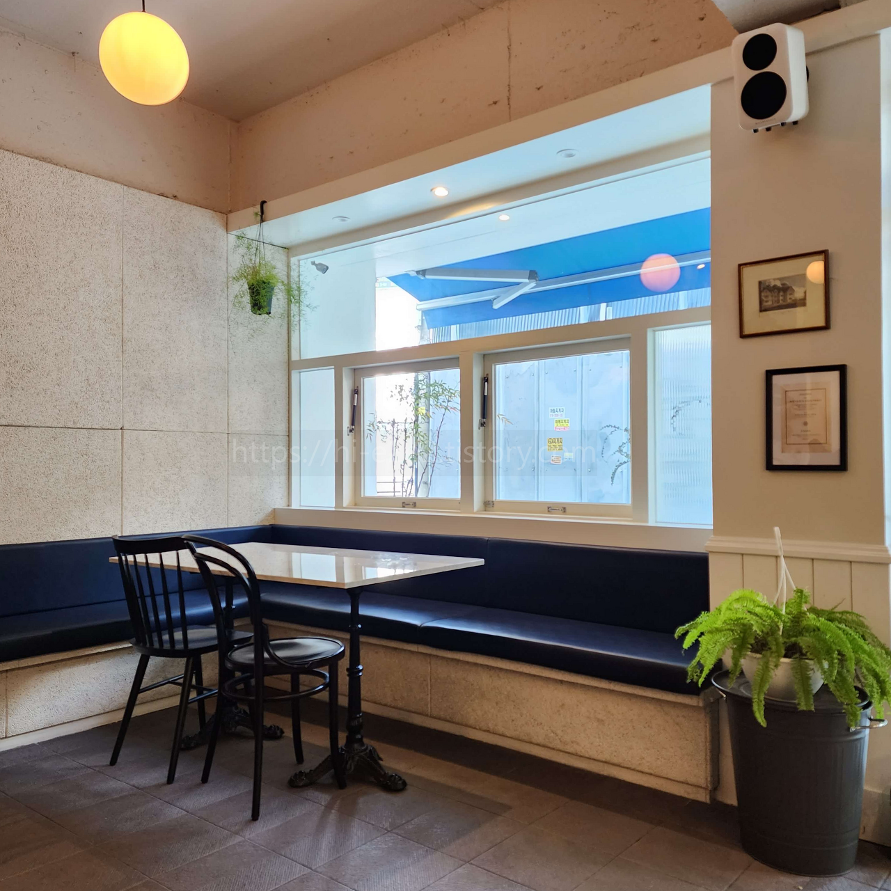 아직 손님으로 가득 차서 비어있는 테이블만 찍어봤는데 인테리어가 이뻐서 앞에 공사가림막을 세워놓은 것도 눈에 잘 안 띄지 않나요?