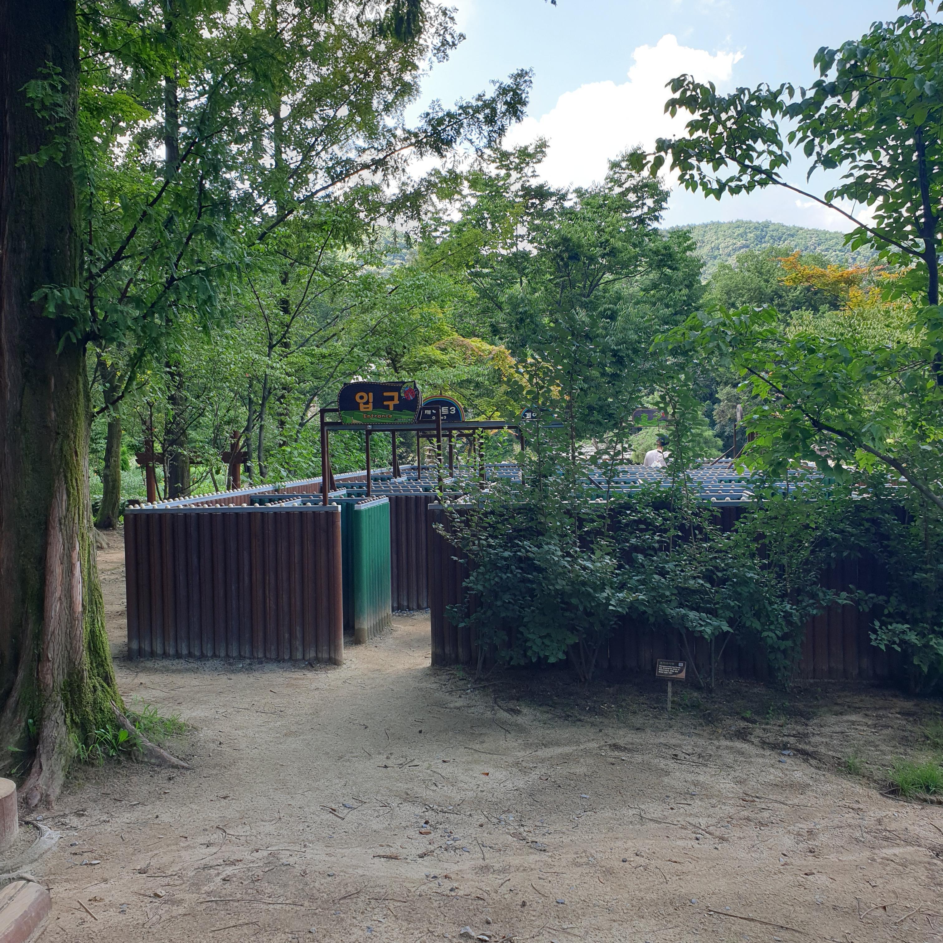 유아놀이터 앞쪽, 족욕하는 곳 옆으로는 작은 사육장과 미로도 있어 아이들과 오기 참 좋겠다 싶었다.