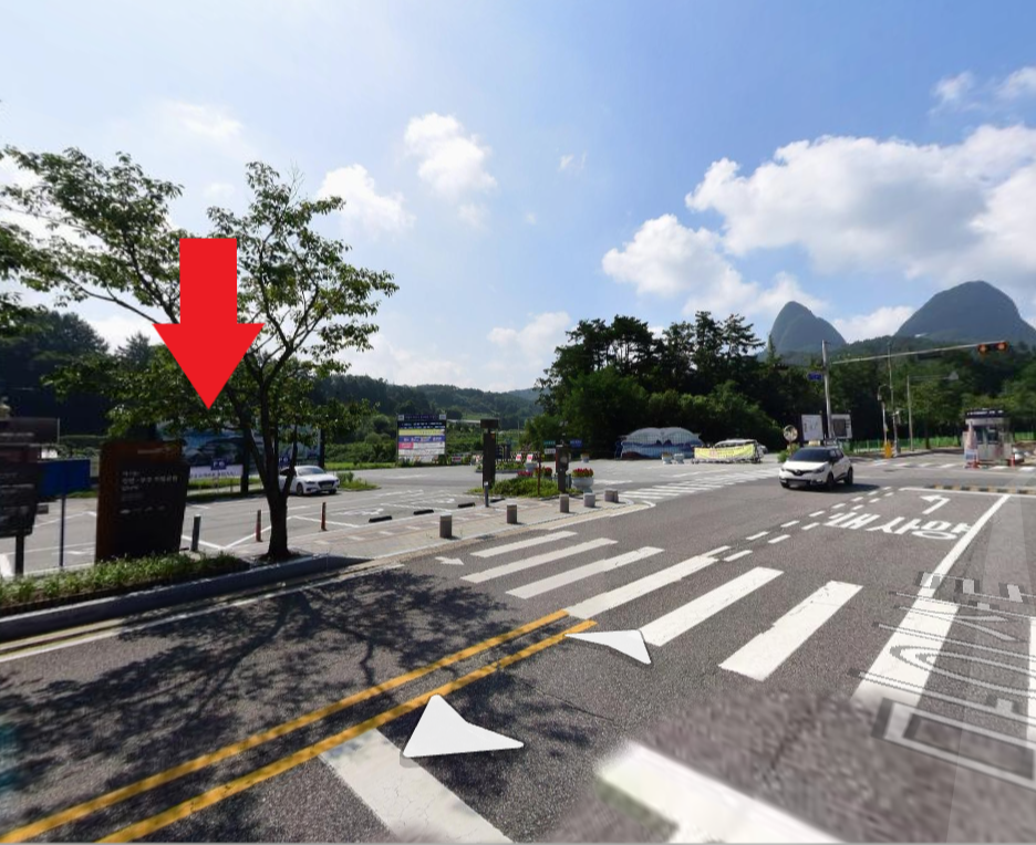 여기는 북부주차장인데 빨간색 화살표에서 버스가 보이면 손을 흔들어 타는 형식이다.
