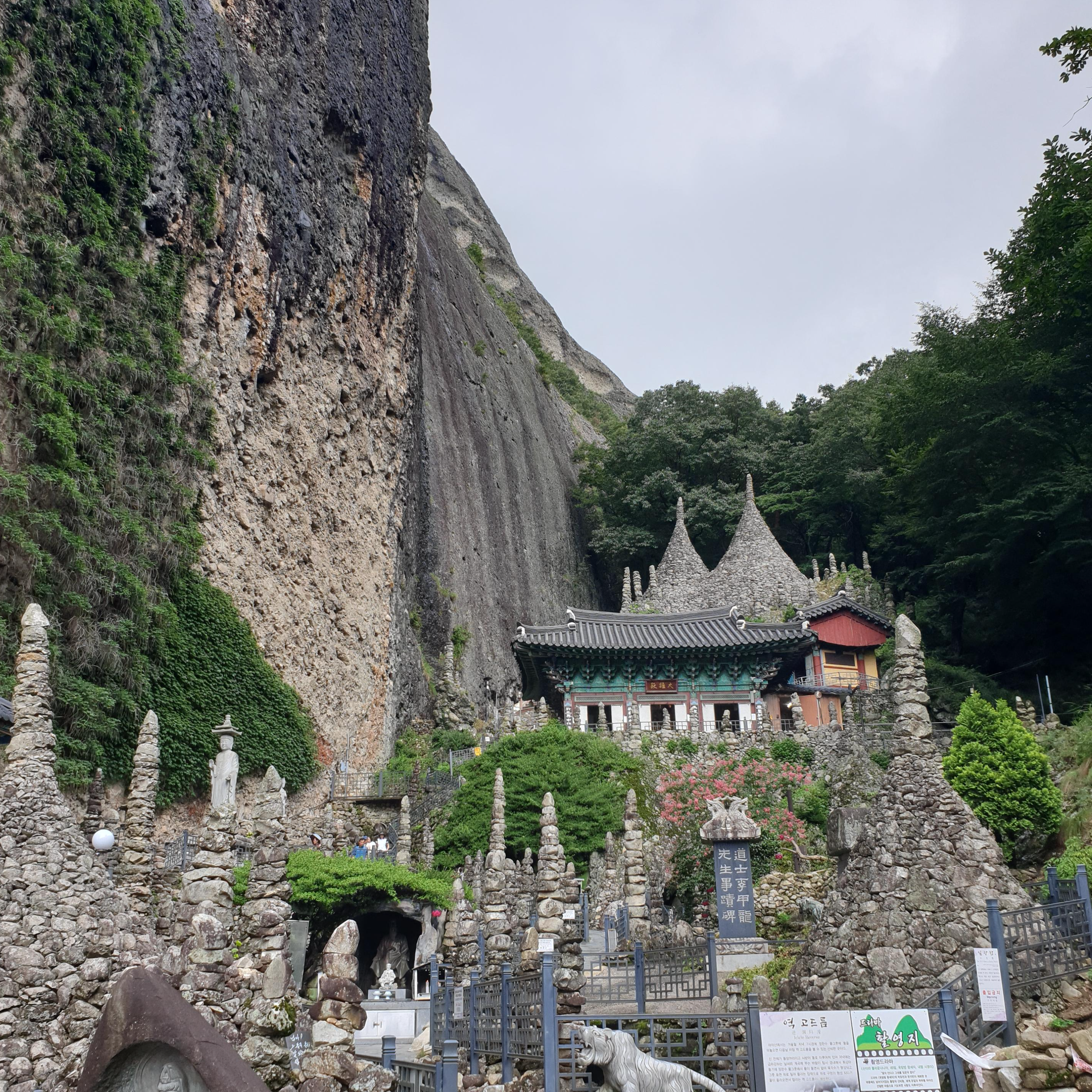 도착하자마자 입이 딱 벌어지는!! 이렇게 큰 암벽도 처음보고 질감이라 해야 되나? 시멘트색에 현무암느낌도 나고 자갈도 총총 박혀있고 암벽에 1차 놀래고 돌탑보고 2차 놀람!!