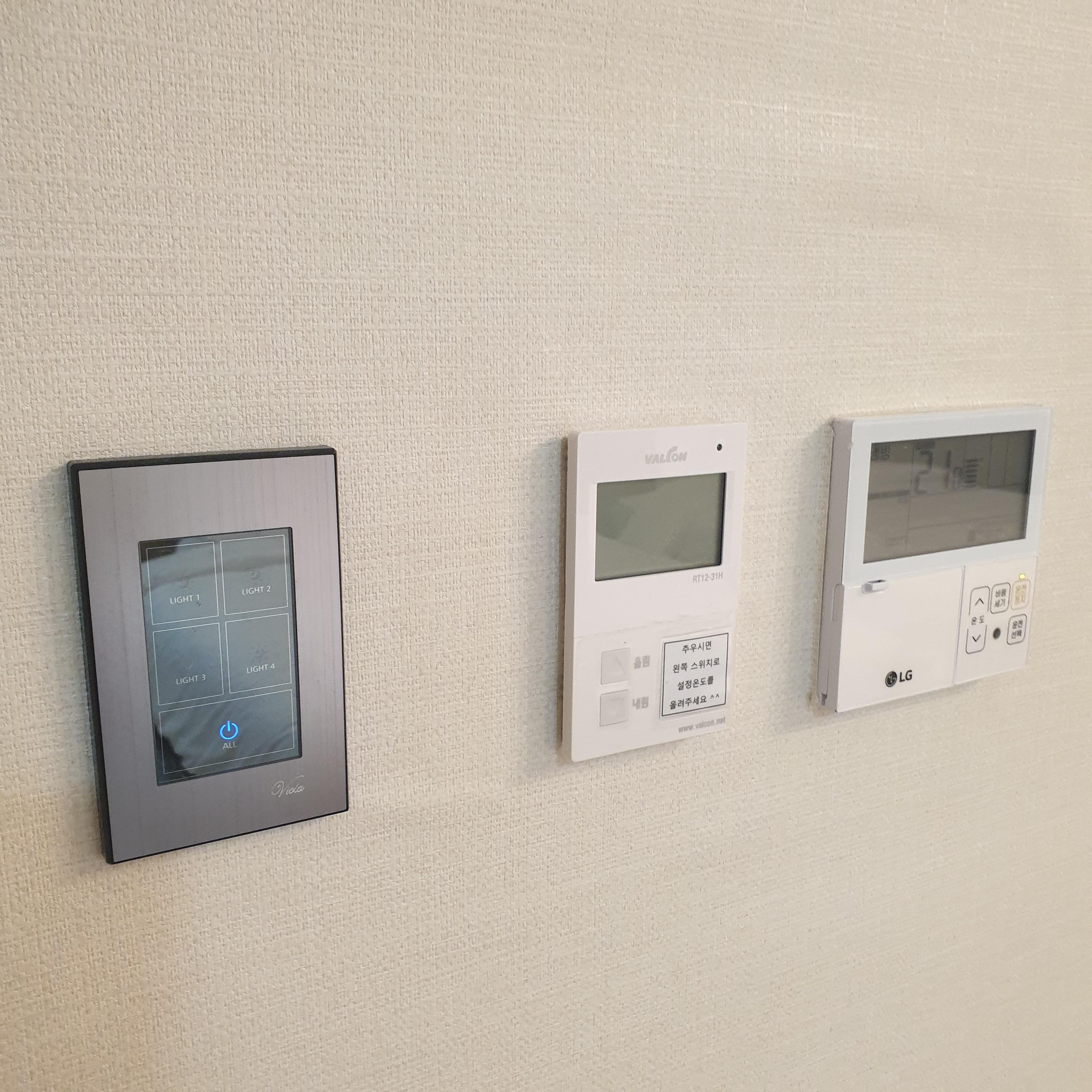 조명 스위치도 한 곳에서 컨트롤 가능하고 에어컨과 바닥보일러 설정하는 패드도 같이 있다.