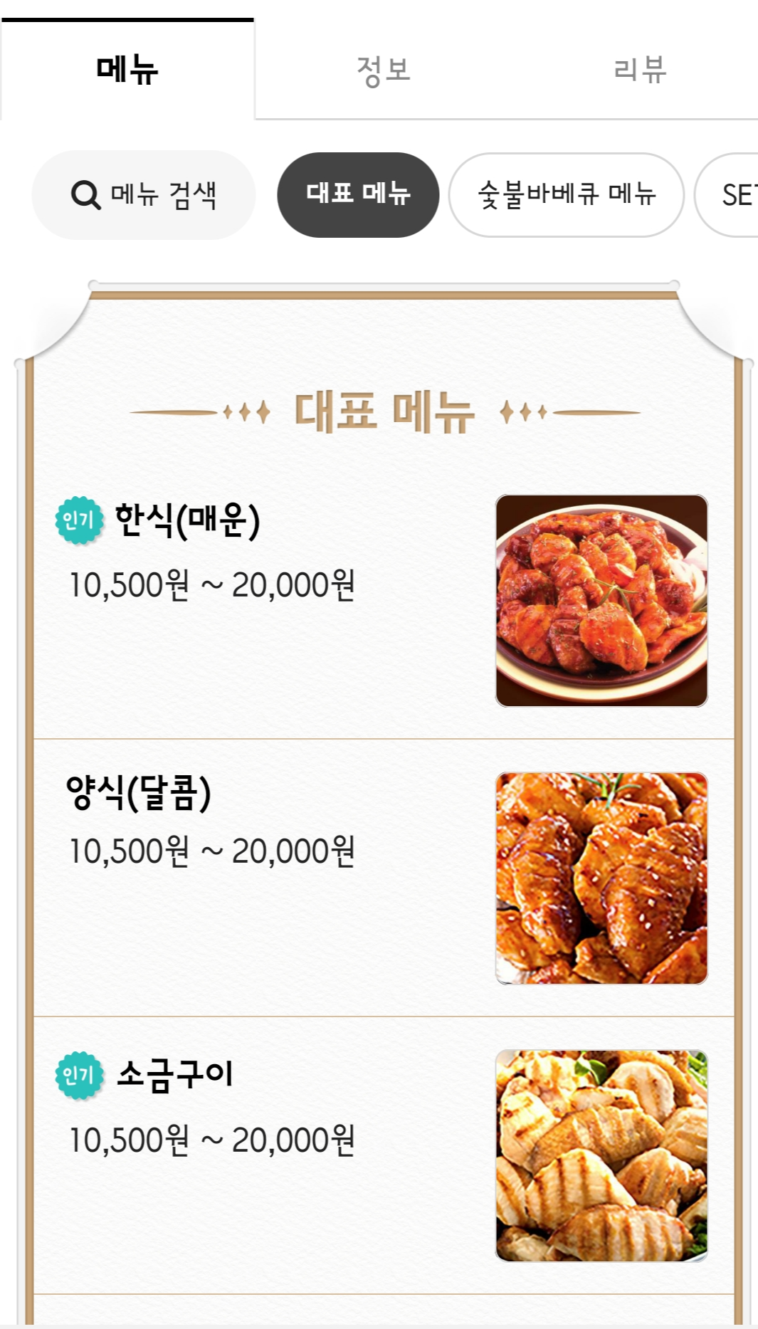 ::불로만 숯불 바베큐 메뉴판::