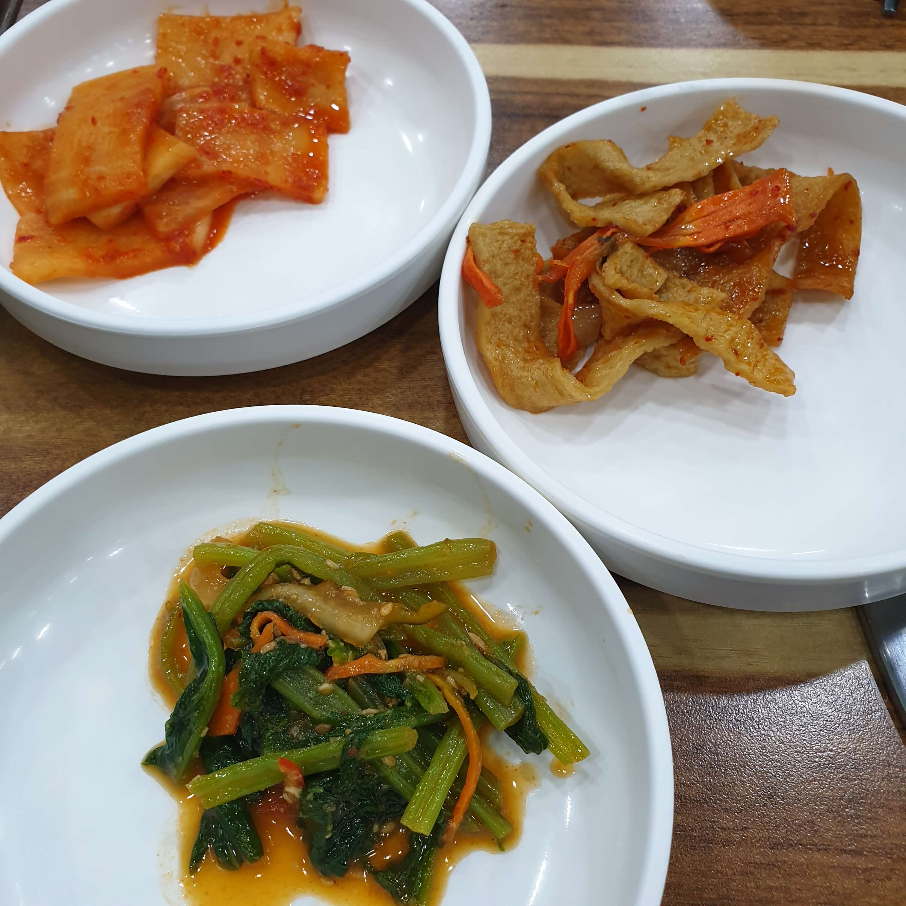 기본으로 세팅된 반찬들 ㅎㅎ 아마 쌈장, 마늘, 고추와 상추는 순대곱창볶음을 시켜서 주신 것 같아요~