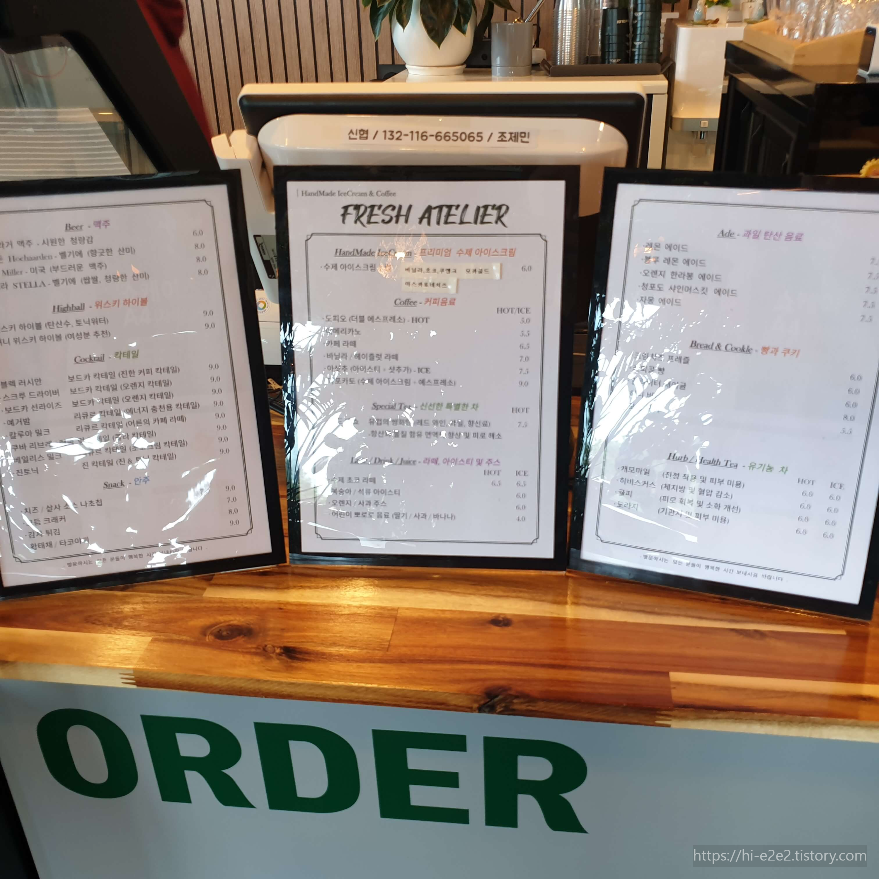 가격은 수제 아이스크림은 6.0 / 커피는 5.5 / 리떼는 6.5로 형성되어 잇었습니다!