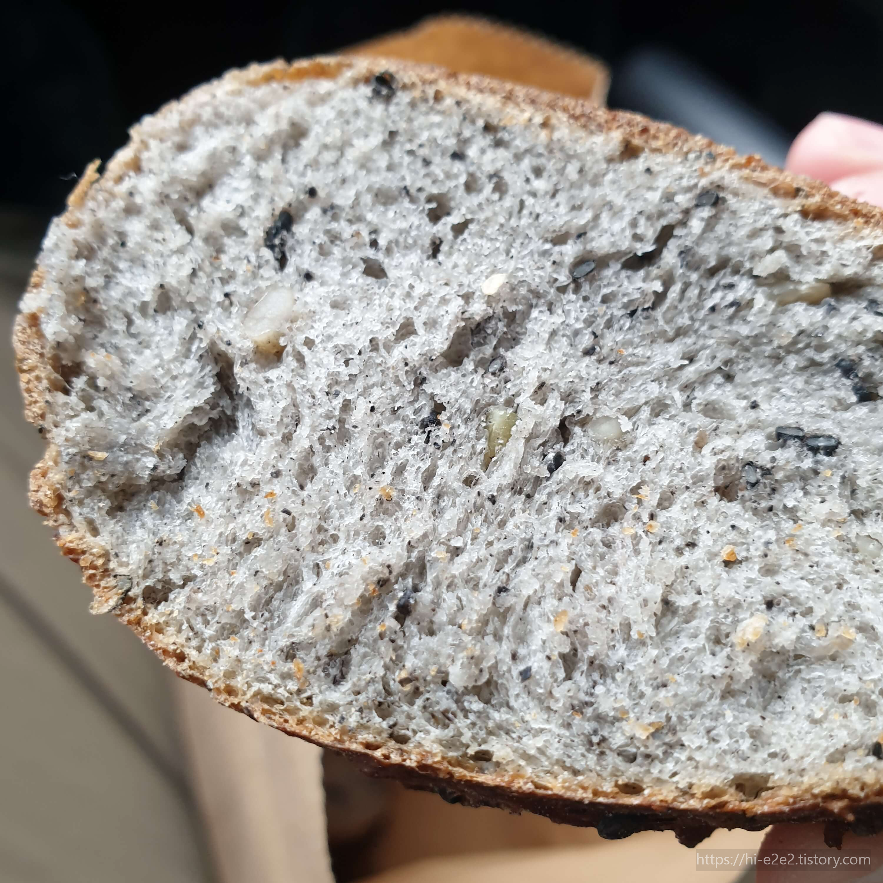 내가 구입한 건 흑임자 효모빵이었는데 중간중간 흑임자도 씹히고 견과류도 씹히는 게 아주 고소하니 맛났다.