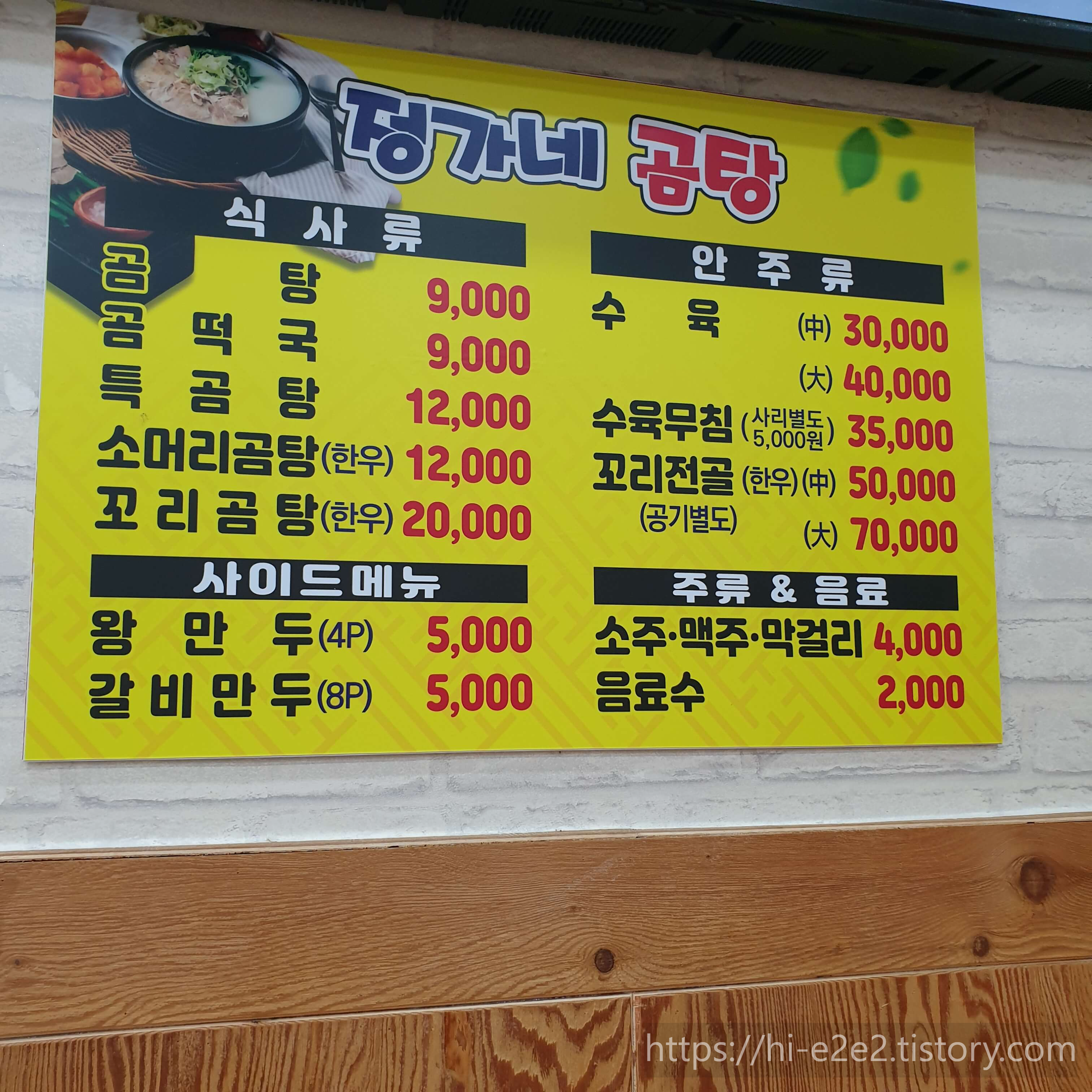 ::정가네곰탕 메뉴판::