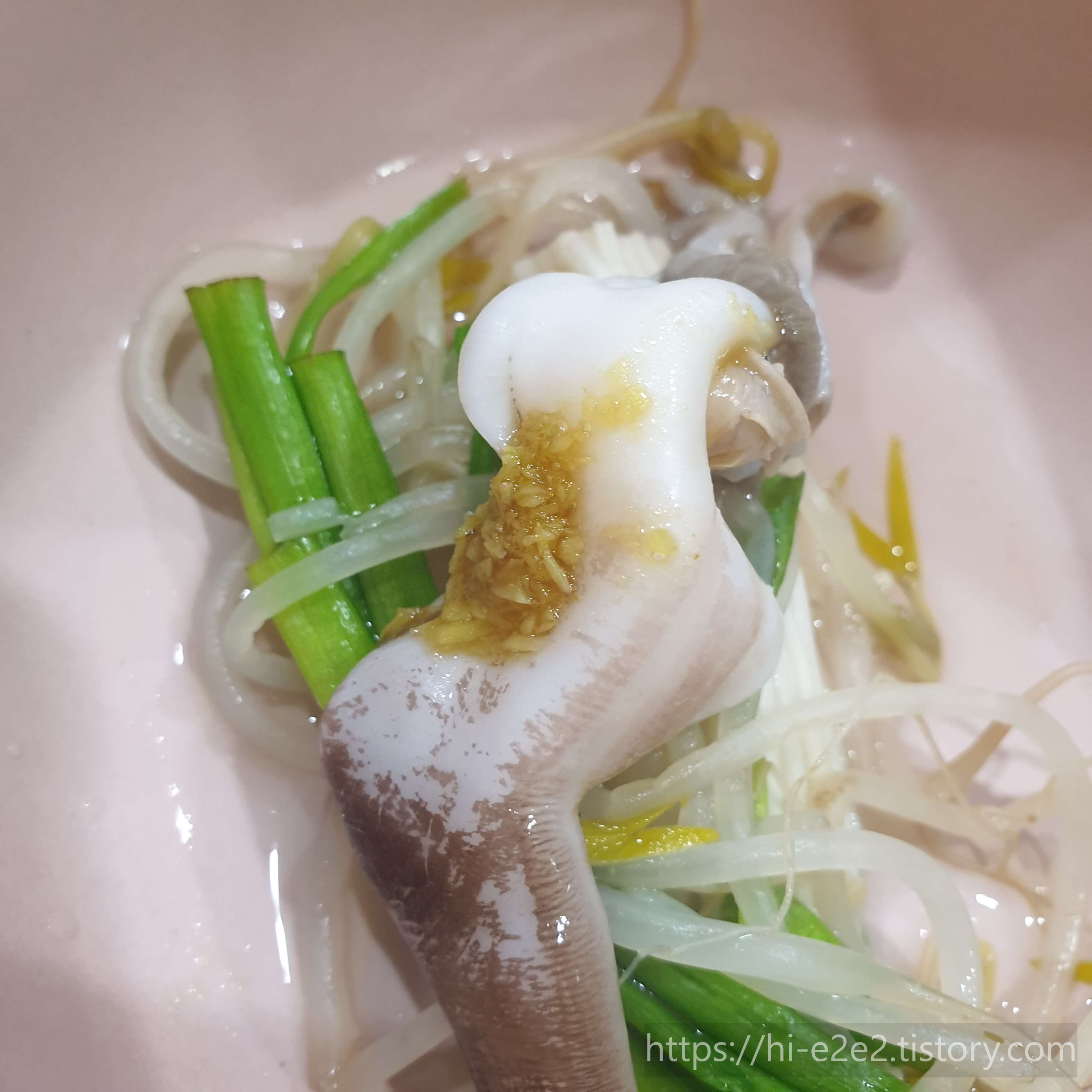 새조개는 3~5초만 데치면 부드럽게 드실 수 있어요! 데치는 시간이 짧다 보니 빠르게 먹을 수 있어서 먹보이니는 매우 대만족..!😁💕