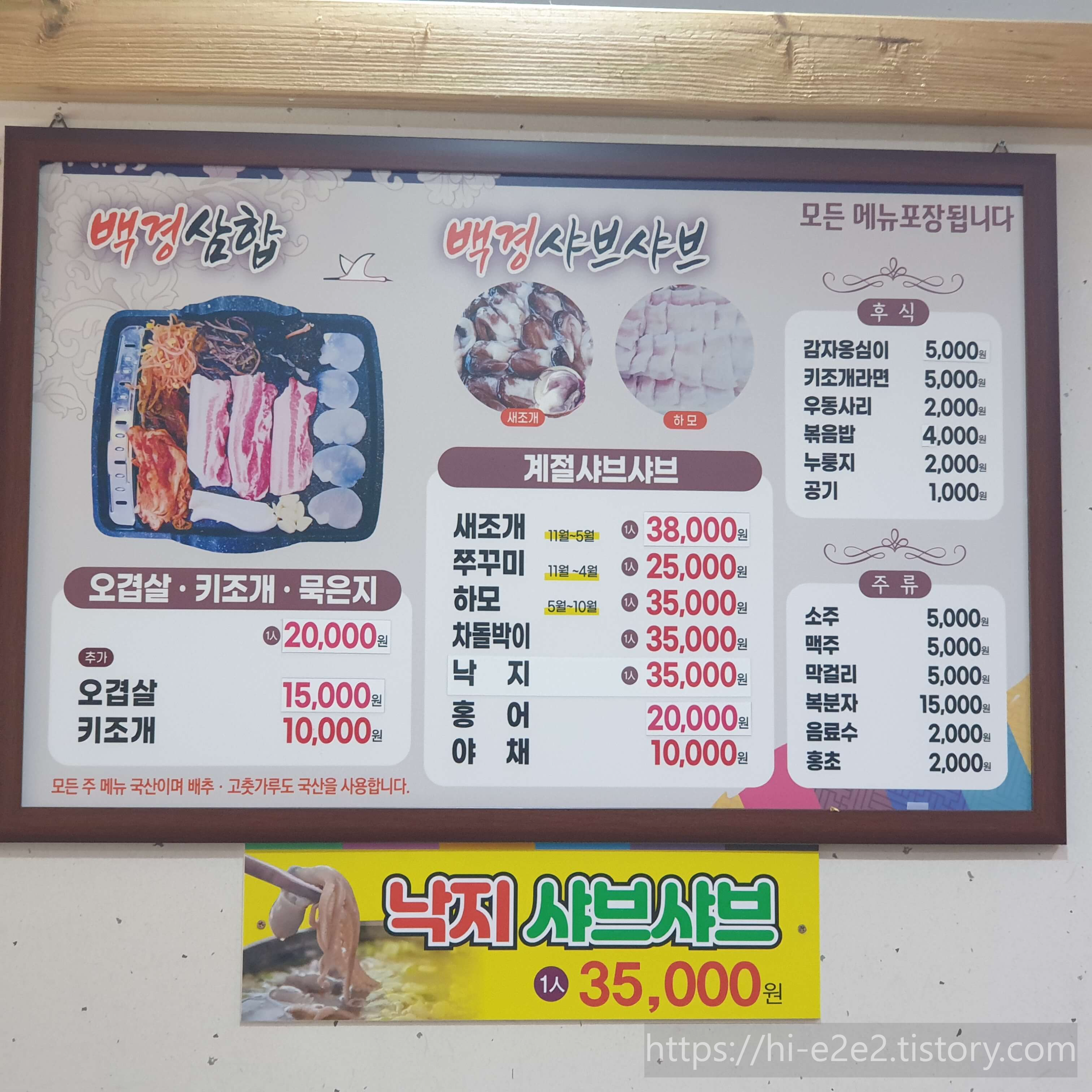 ::백경 샤브샤브 메뉴판::