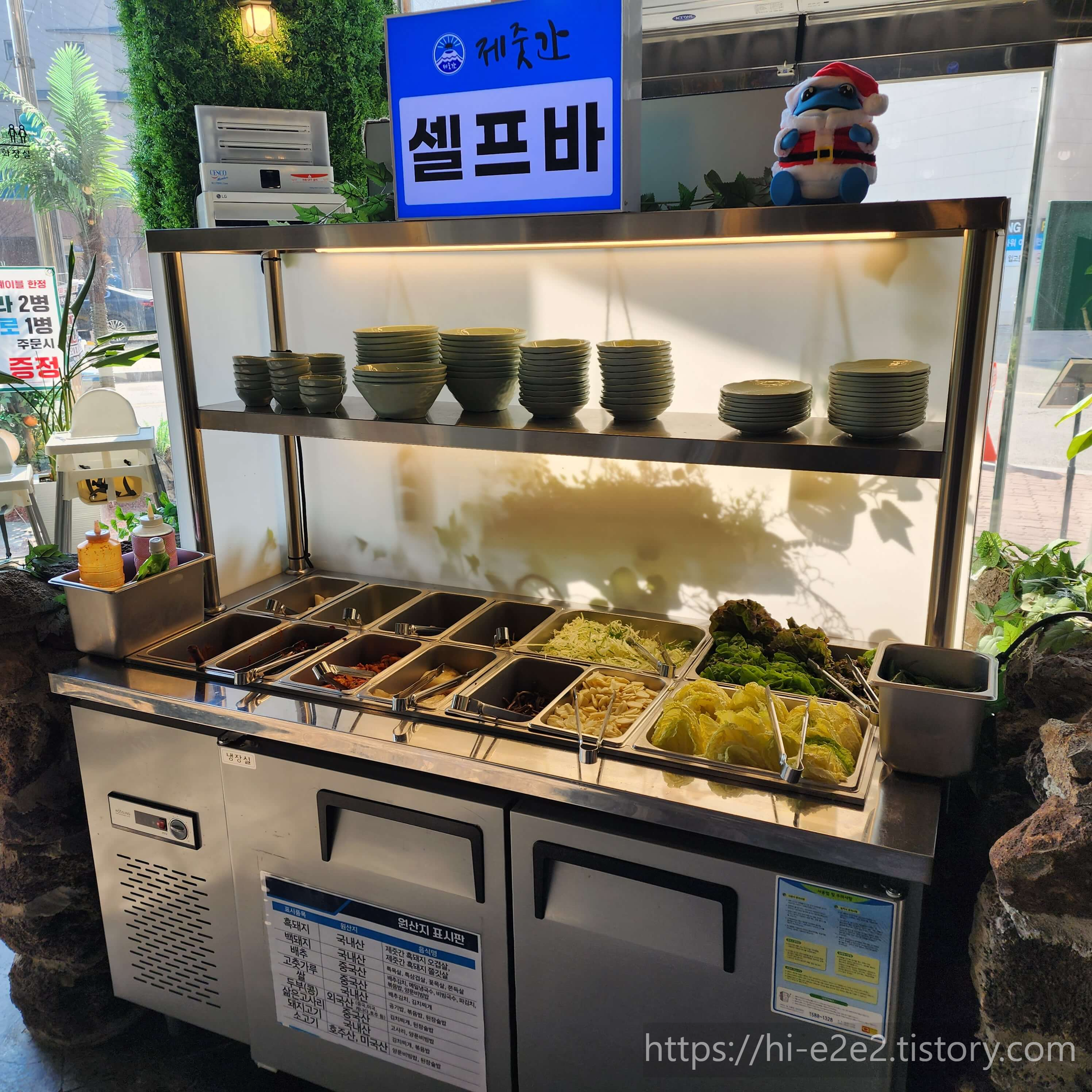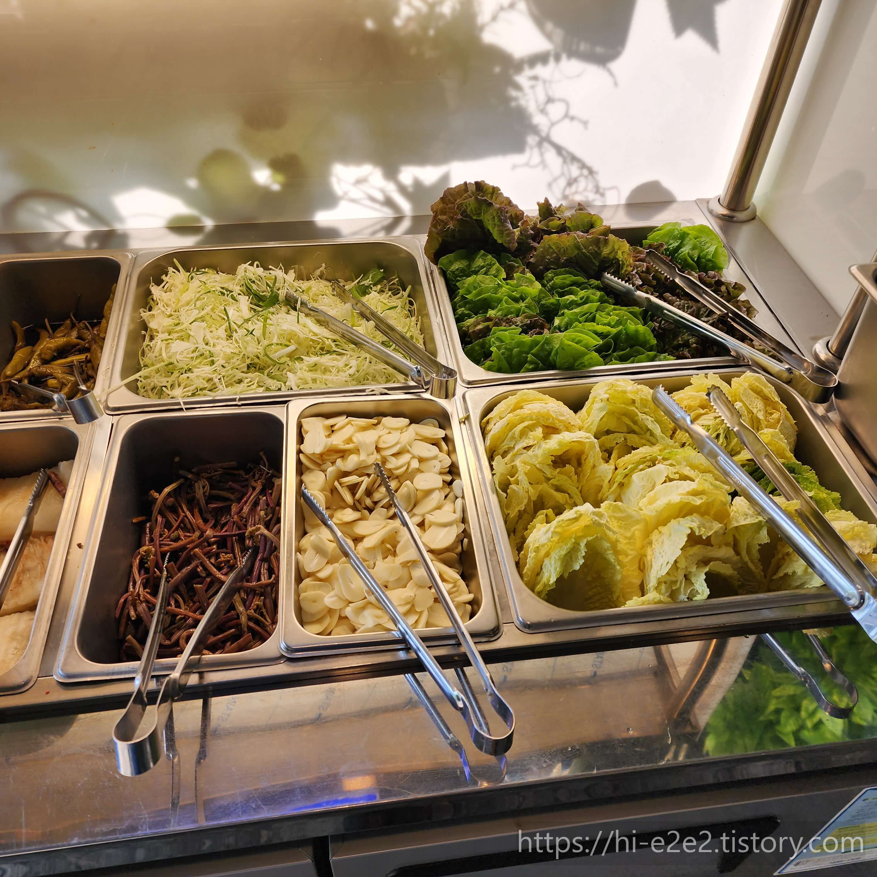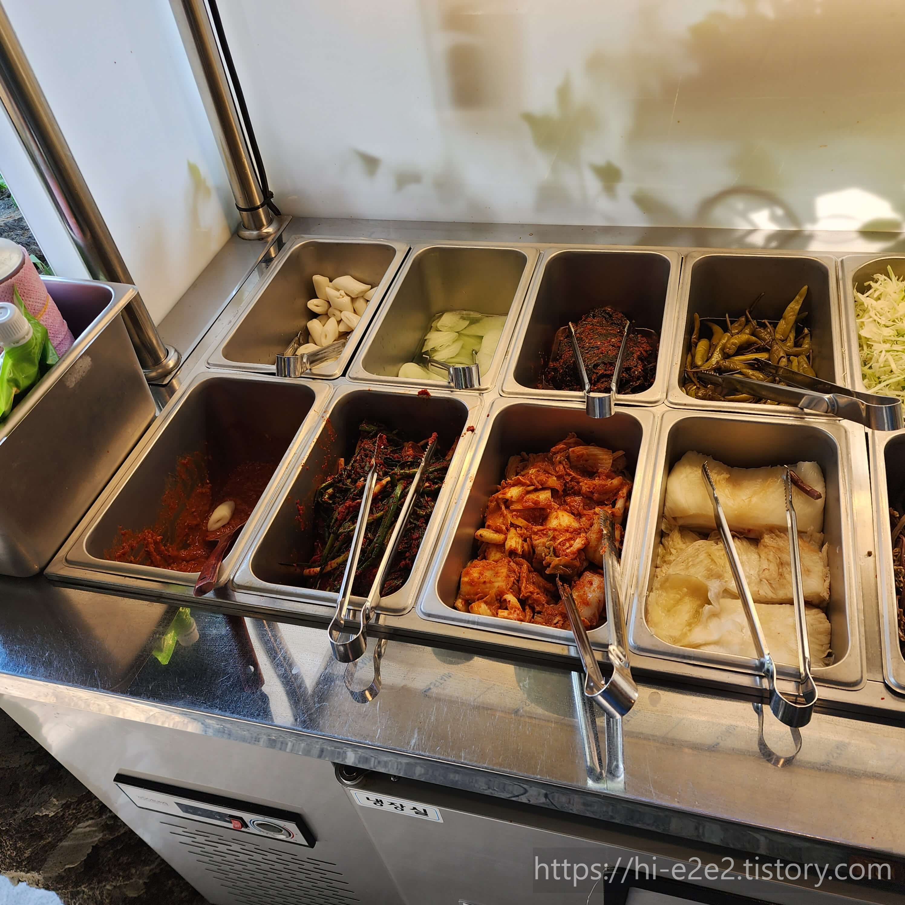 그 외에 셀프바에서 고추지, 파김치, 깻잎지등 기본으로 나오지 않는 반찬들도 가져다 먹을 수 있었답니다.