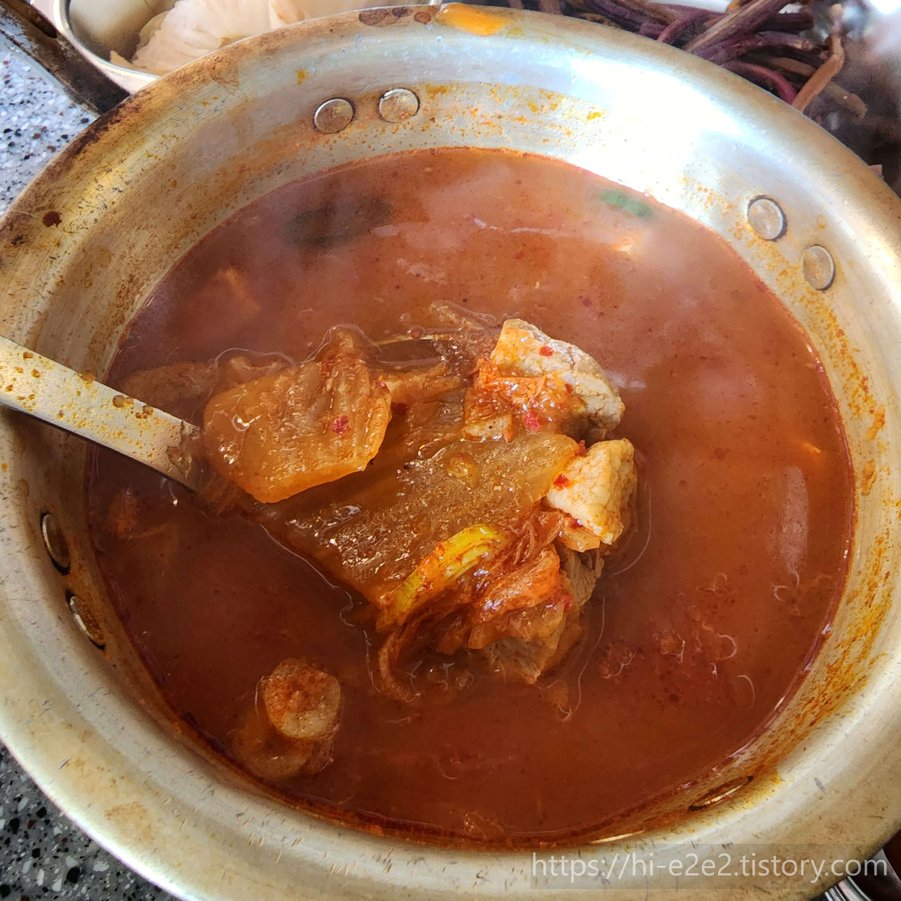 기본으로 나오는 흑돼지 김치찌개인데 건더기가 섭섭하지 않게 들어있더라고요.