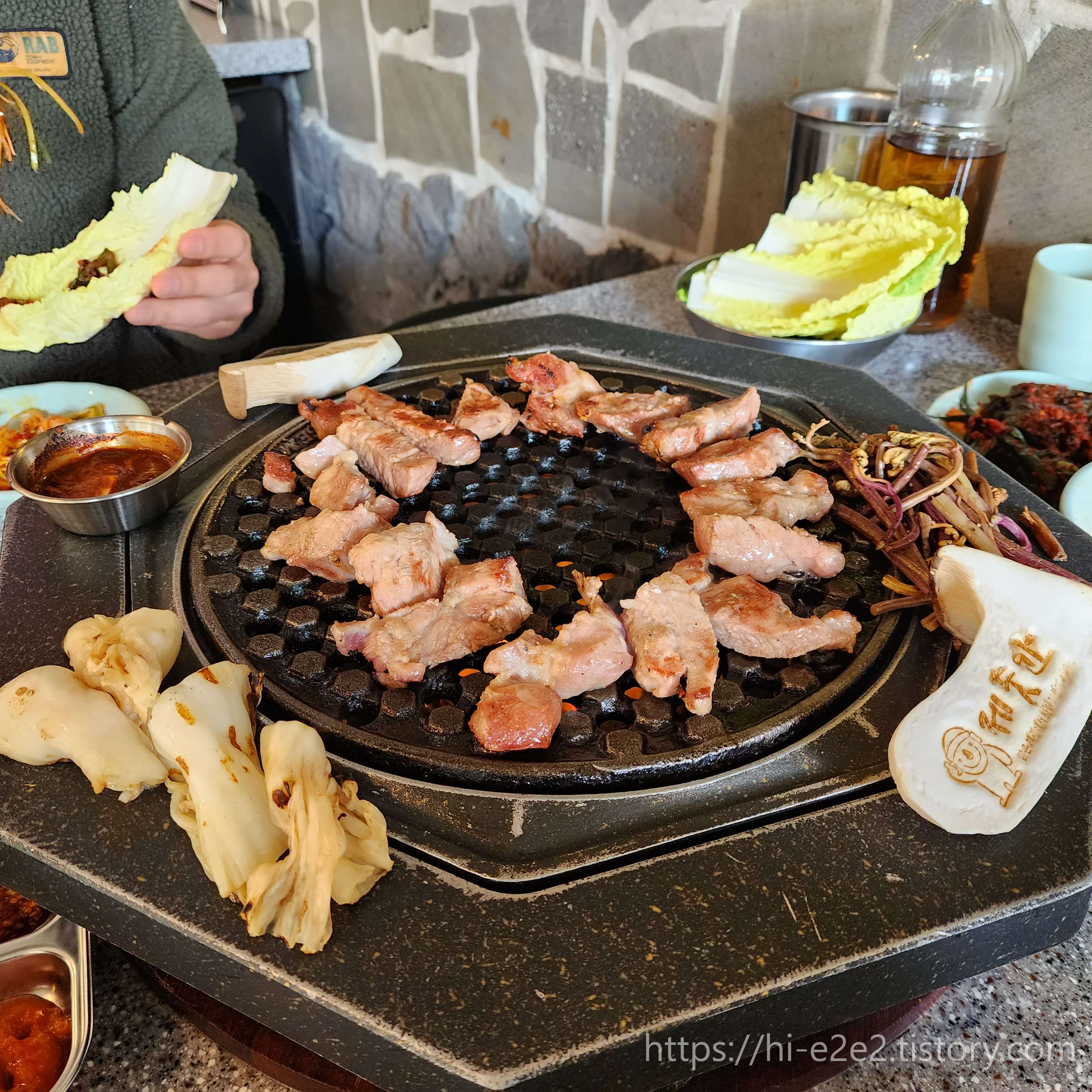 여기는 고기를 직접 다 구워주시기 때문에 텅텅 빈 위장과 참을성만 있으면 됩니다. 사장님이 굉장히 친절하게 제줏간에 대한 얘기 해주시면서 고기를 구워주시더라고요ㅎㅎ