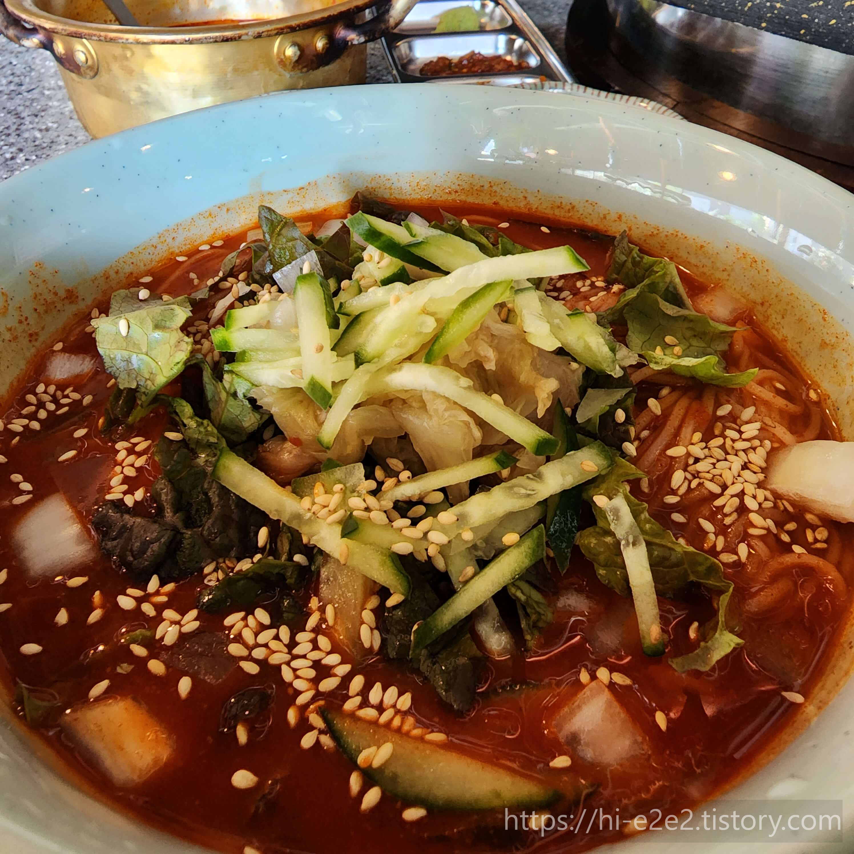 소스 듬뿍 비빔국수는 흠,, 저는 비추입니다. 색은 엄청 빨간데 맵지도 달지도 새콤하지도 않아요.