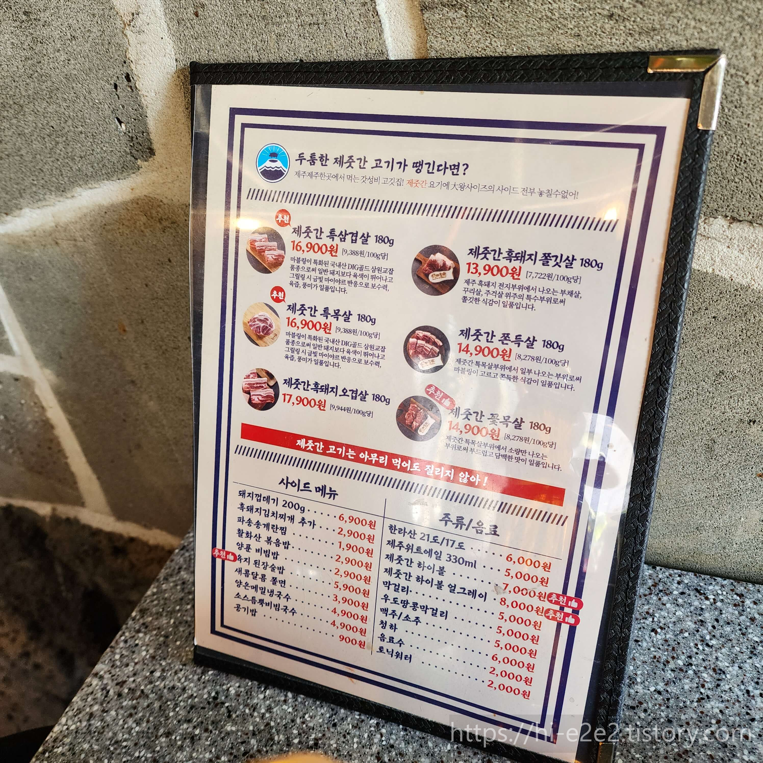 ::제줏간 메뉴판::