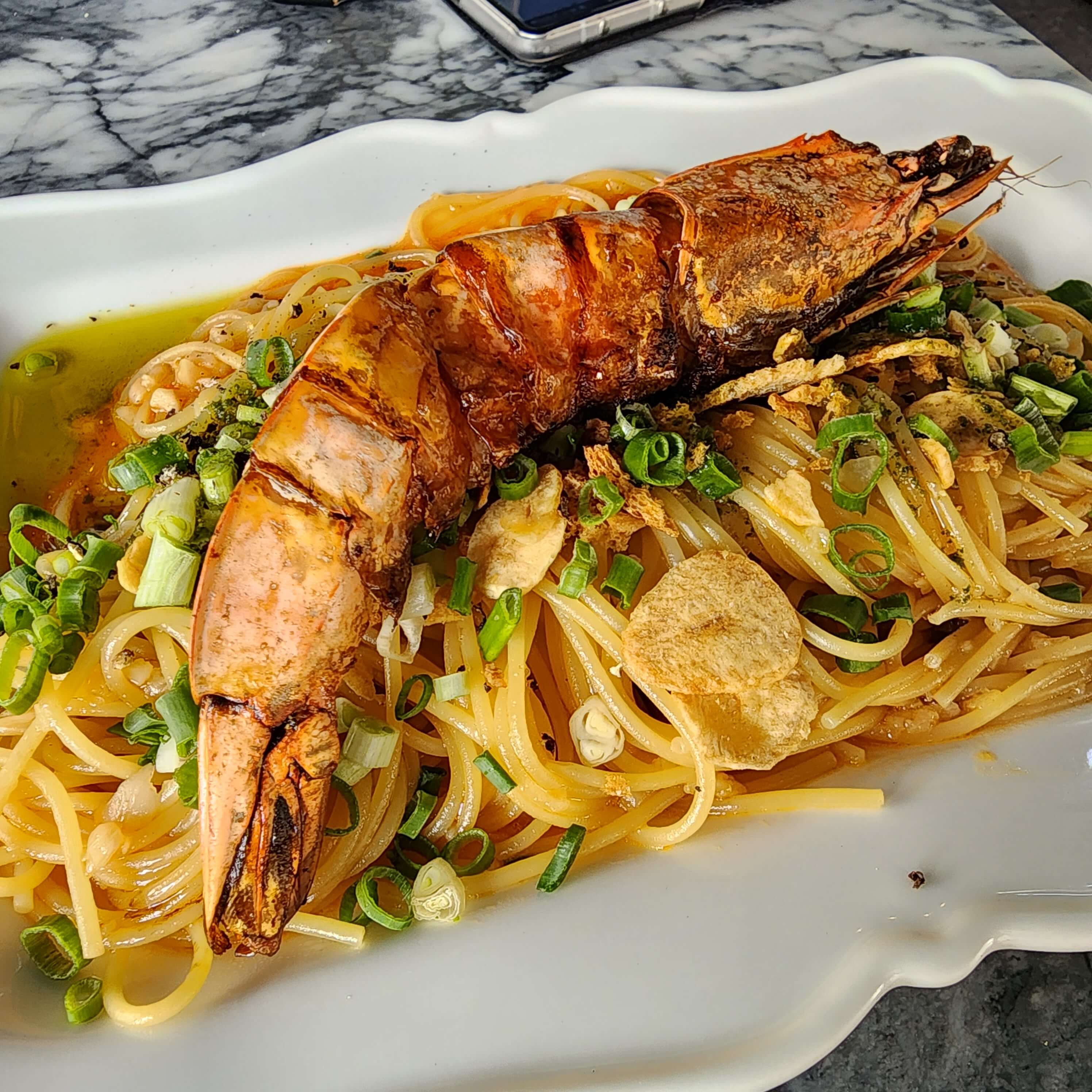 킹프라운은 이름답게 어마어마하게 크더라고요ㅎㅎ 새우살을 발라 파스타와 돌돌 말아서 크게 한입-😋