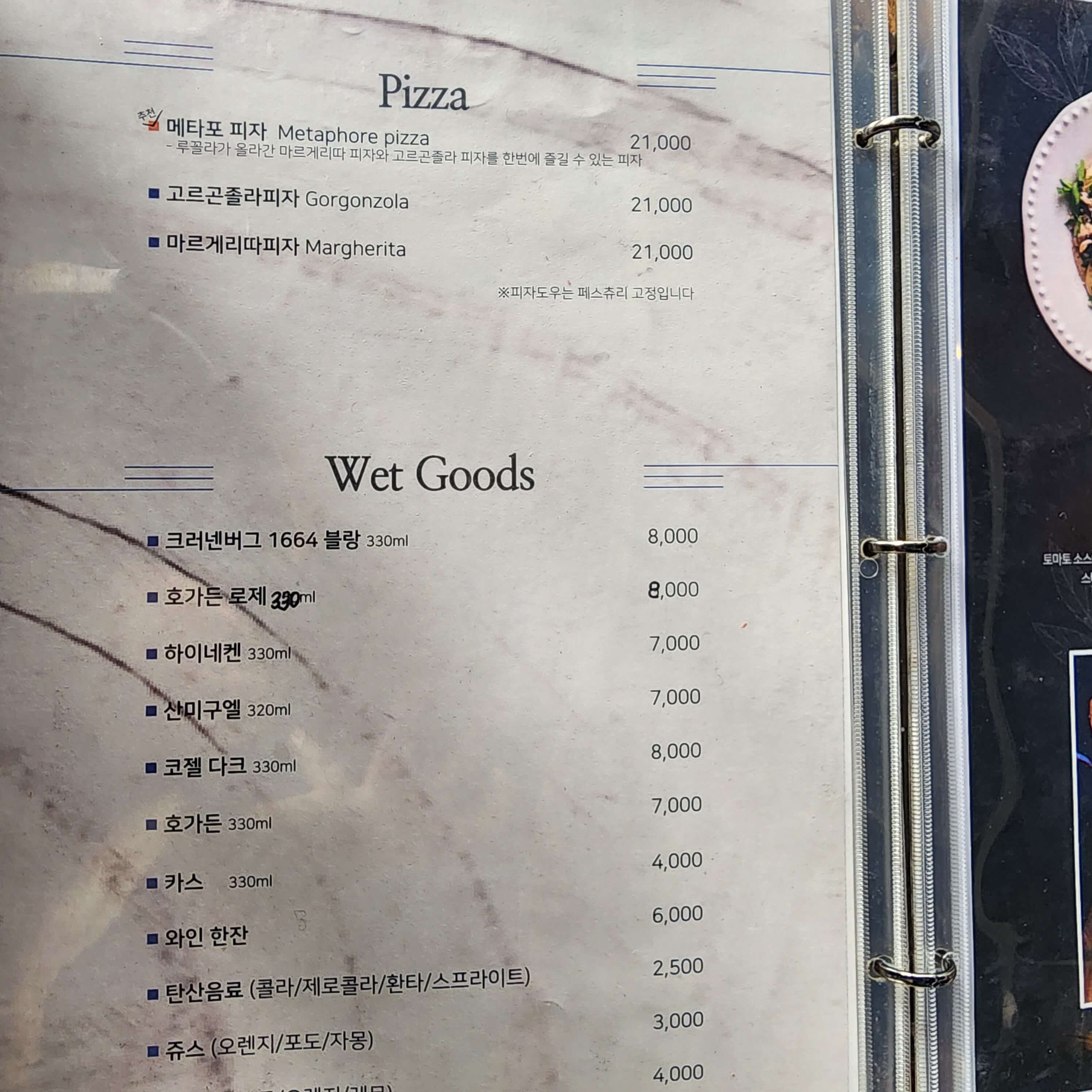 피자도 먹고 싶어 추천메뉴였던 메타포 피자를 시켰는데요,