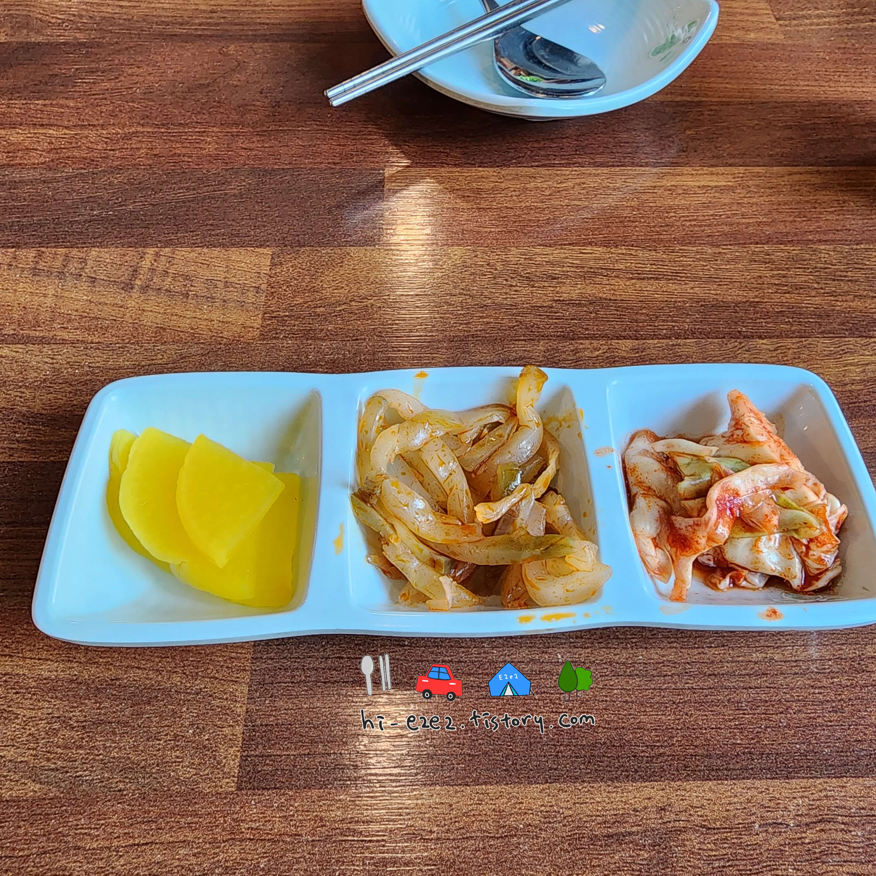 맨 오른쪽은 김치인 줄 알았는데 양배추무침이더라고요!