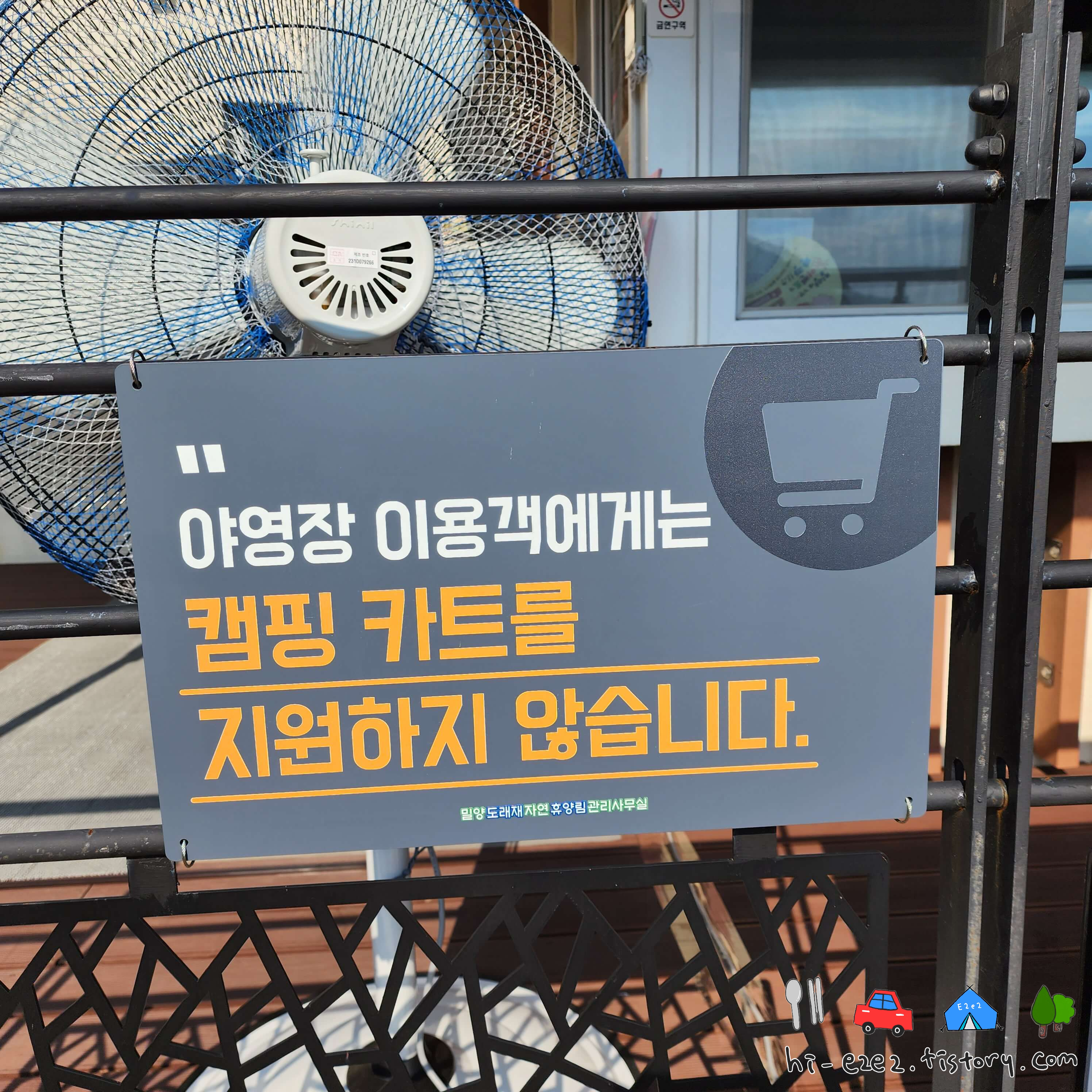 바로 관리실로 달려가 신분증 제시 후 자리 안내와 캠핑장 사용 시 주의사항을 듣고 왔습니다.