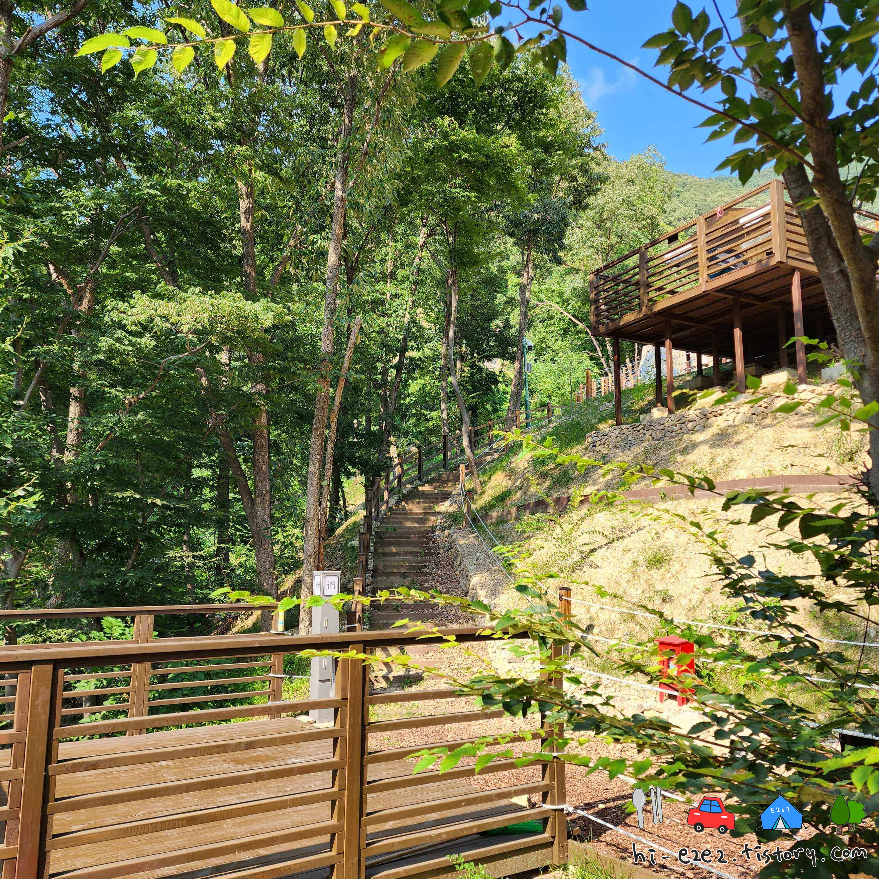 밀양 도래재 자연휴양림 캠핑장은 계단식으로 이뤄져 있는데 이제 아래 쪽으로 내려가는 계단식이예요~