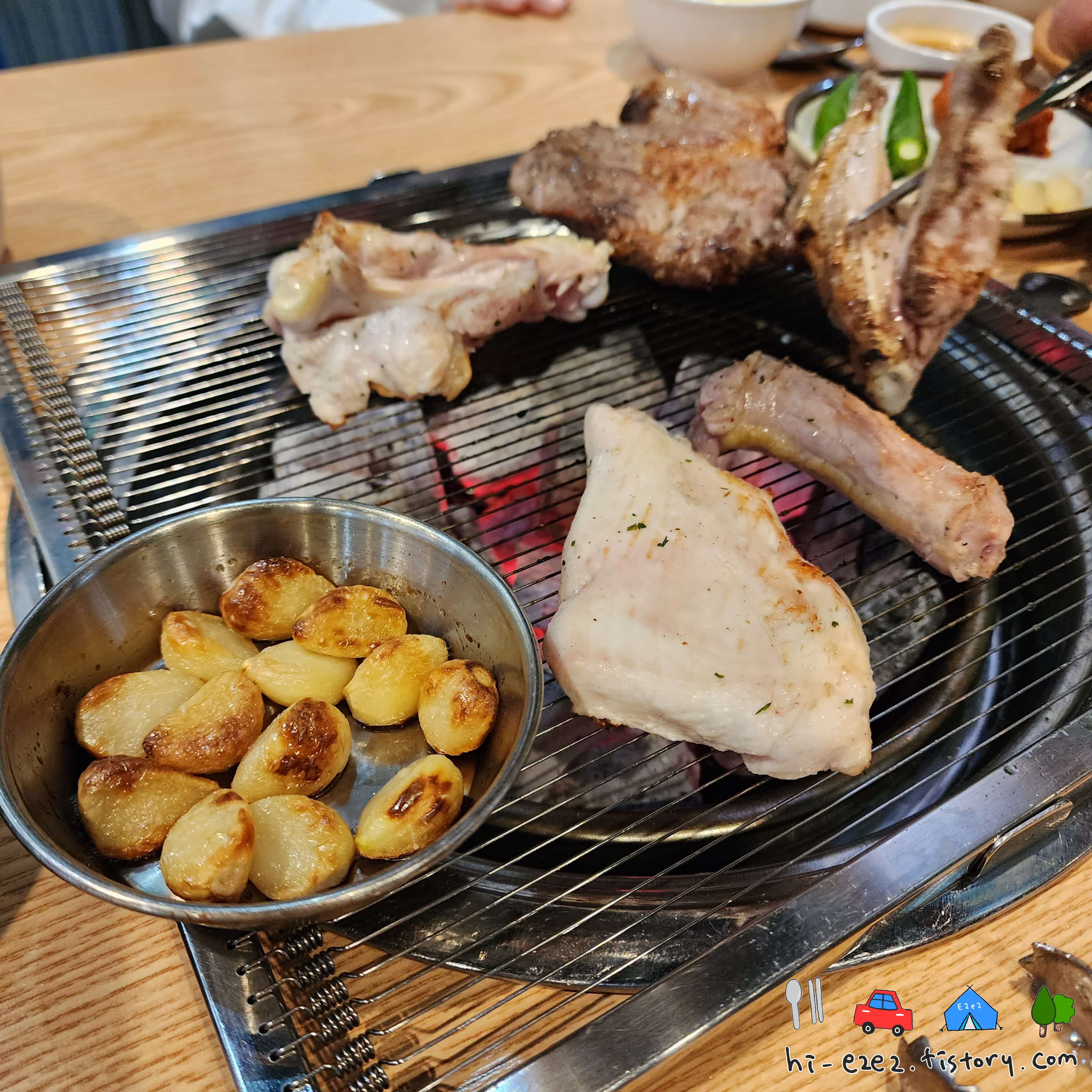 ::촌닭 숯불구이 반마리 & 돼지 목살 숯불구이::
