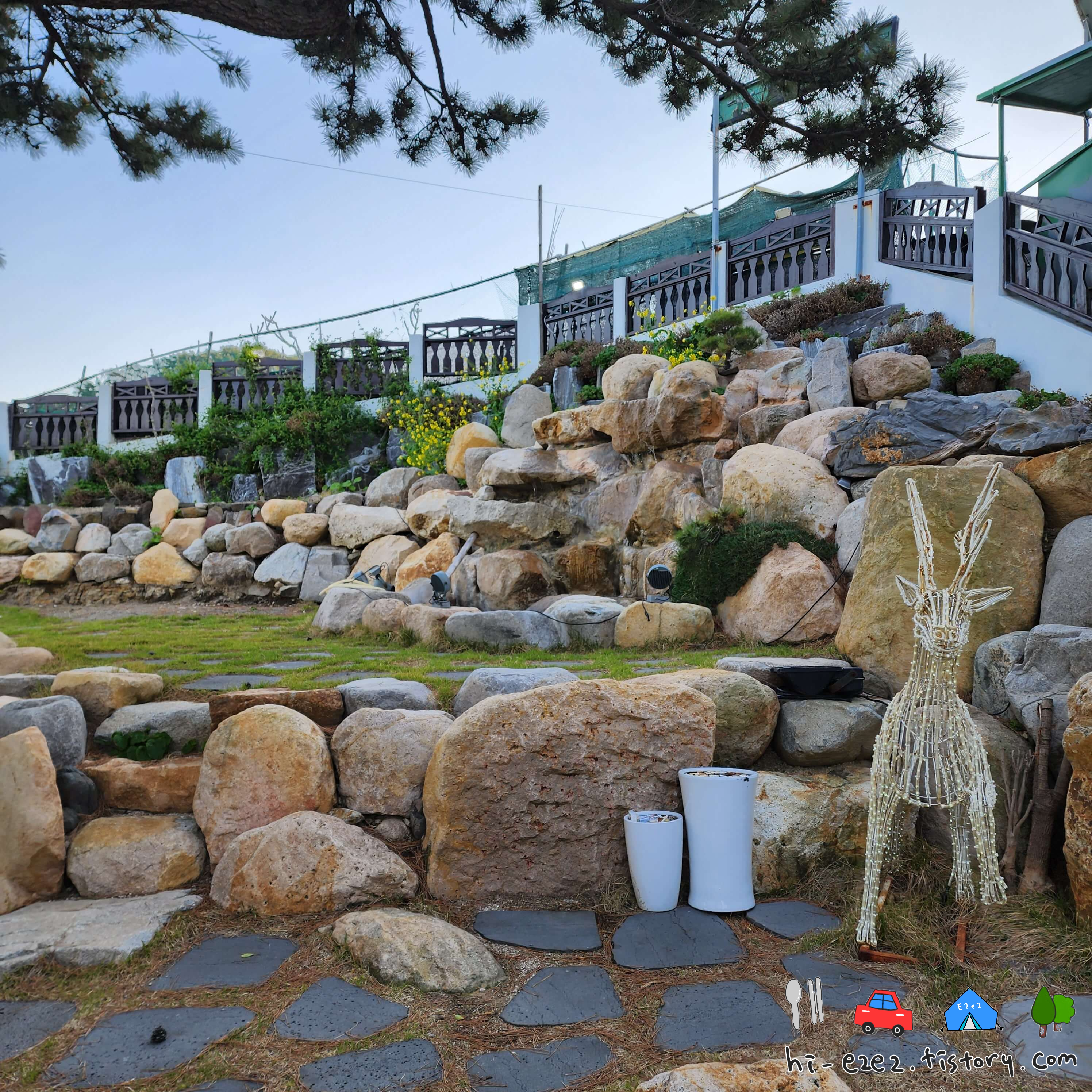 예약시간보다 일찍 도착해서 정원구경도하고 바다구경도하며 기다렸답니다.