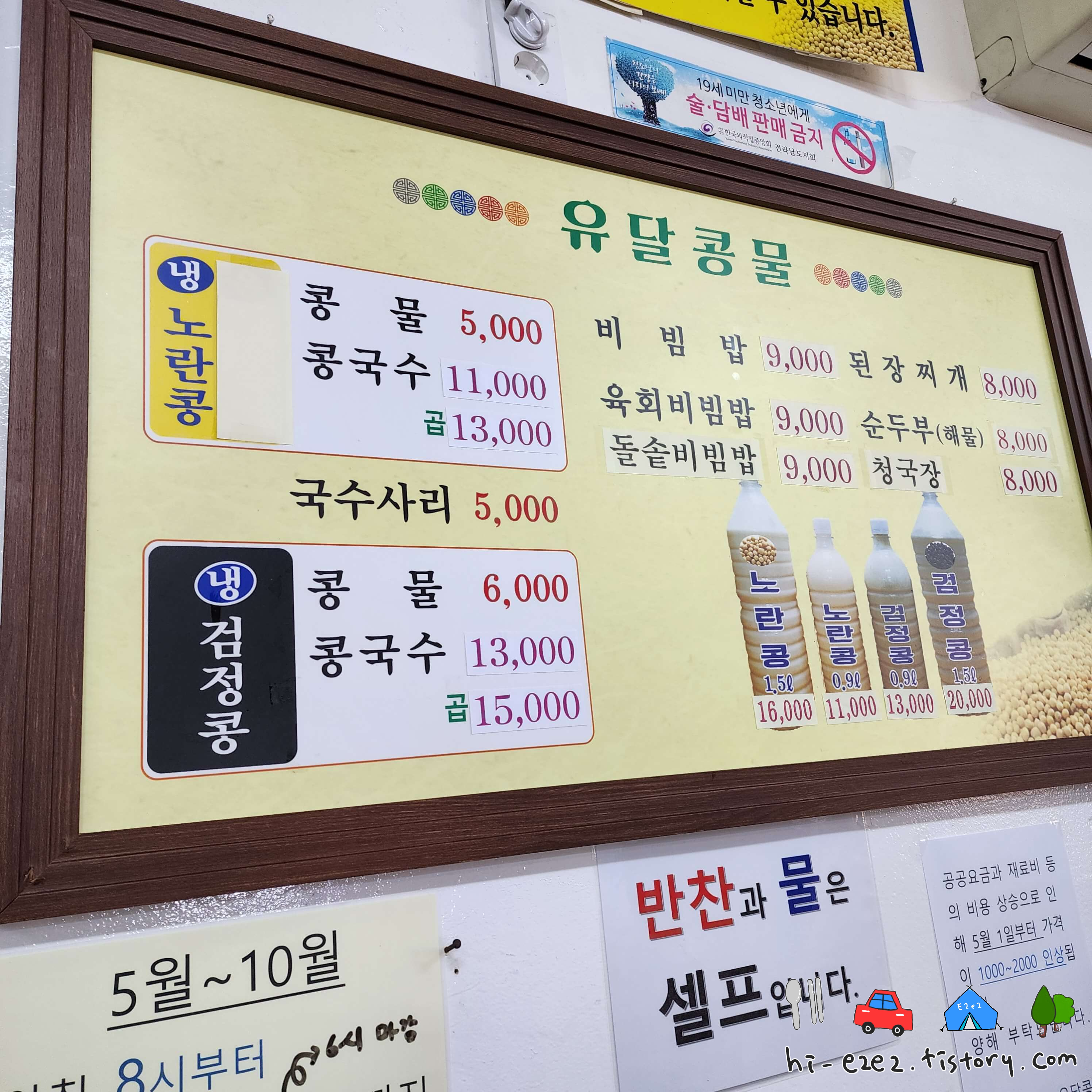 노란콩과 검정콩 두가지를 판매중이고 콩국 외에도 비빔밥과 찌개류를 판매중이였습니다.