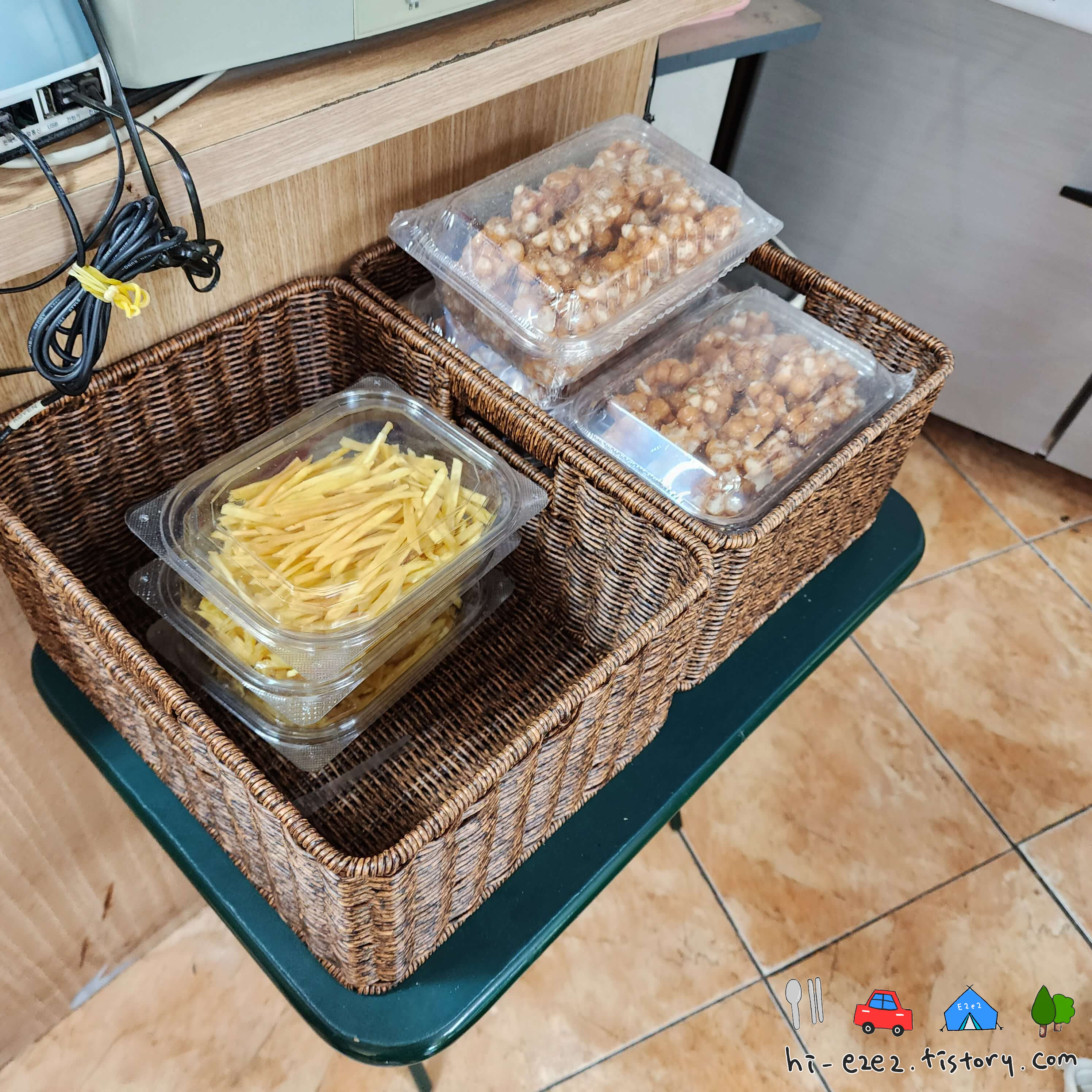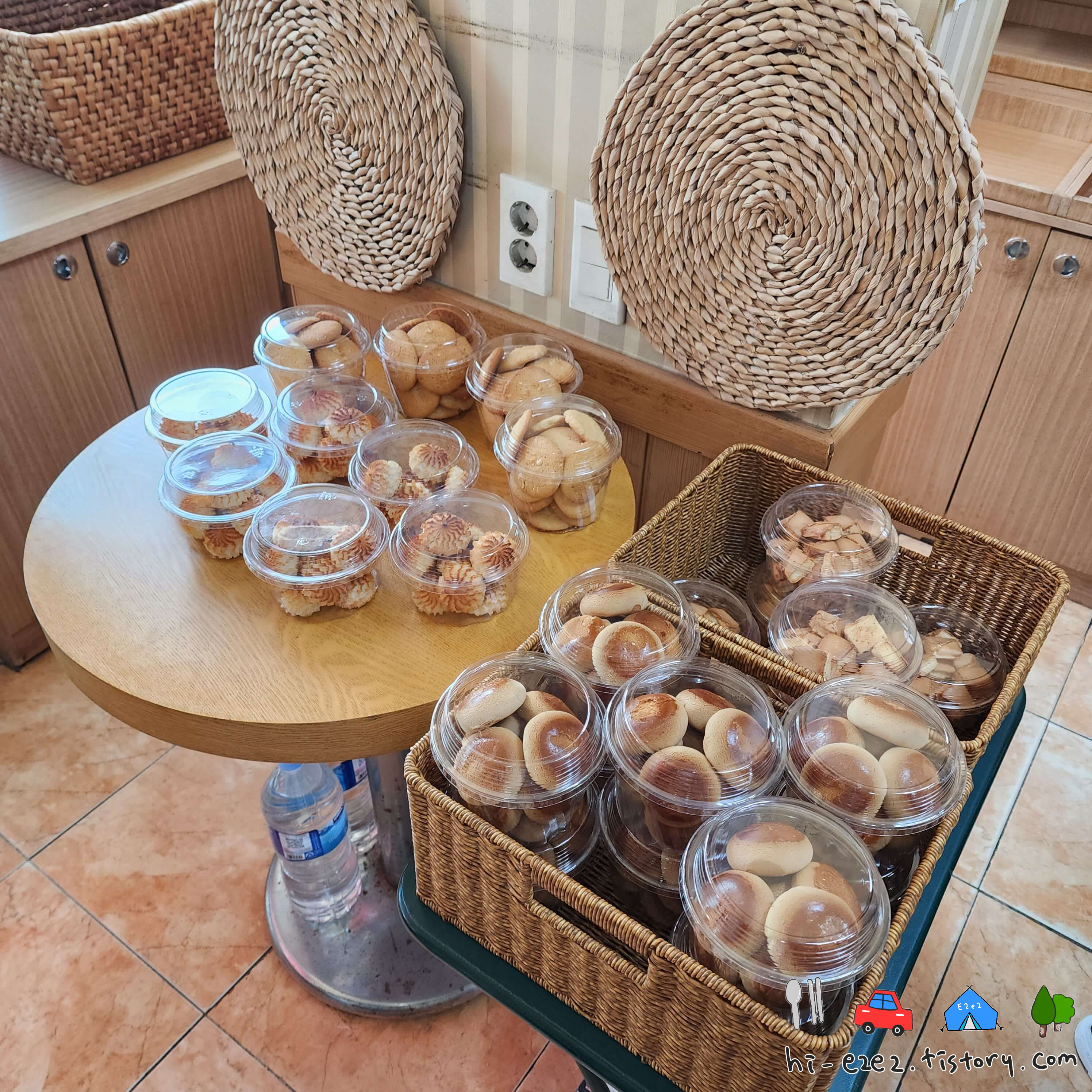 어르신들이 좋아할만한 크림빵, 단팥빵, 카스테라같은 빵들이 주를 이루고 있고 간식거리로는 고구마스틱, 오란다등도 판매하고 있었어요ㅎ
