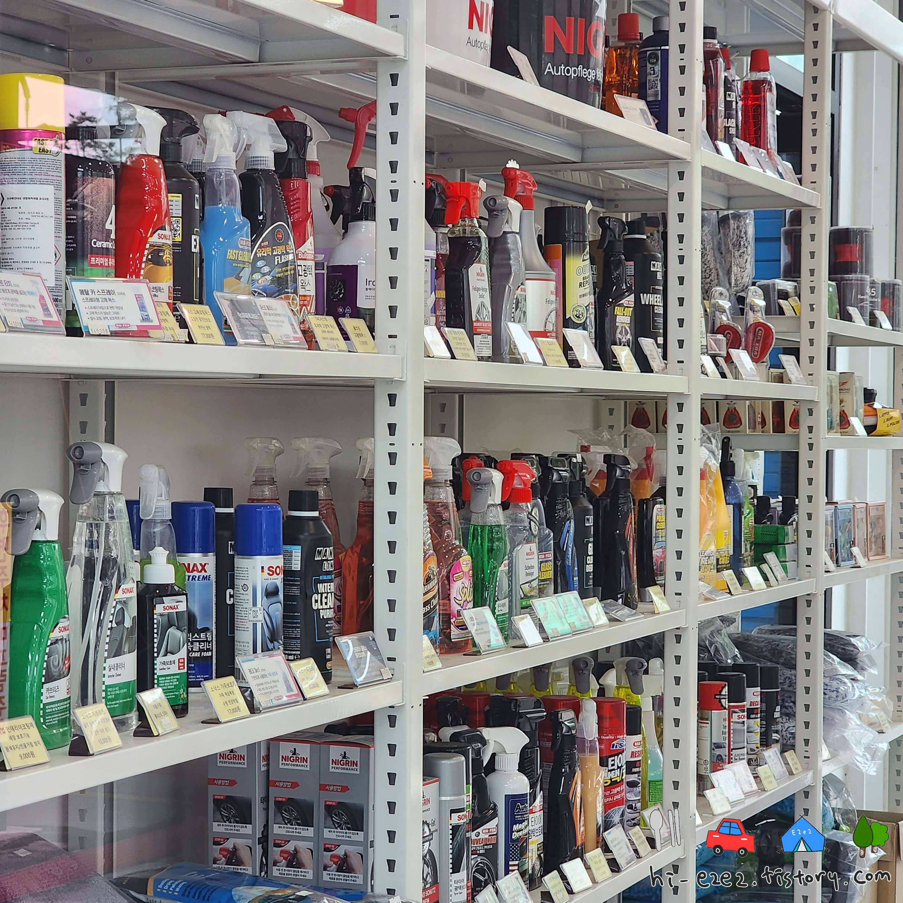 양 옆으로 세차청소도구가 잘 정리되어 있어서 쓰시기 편하답니다.