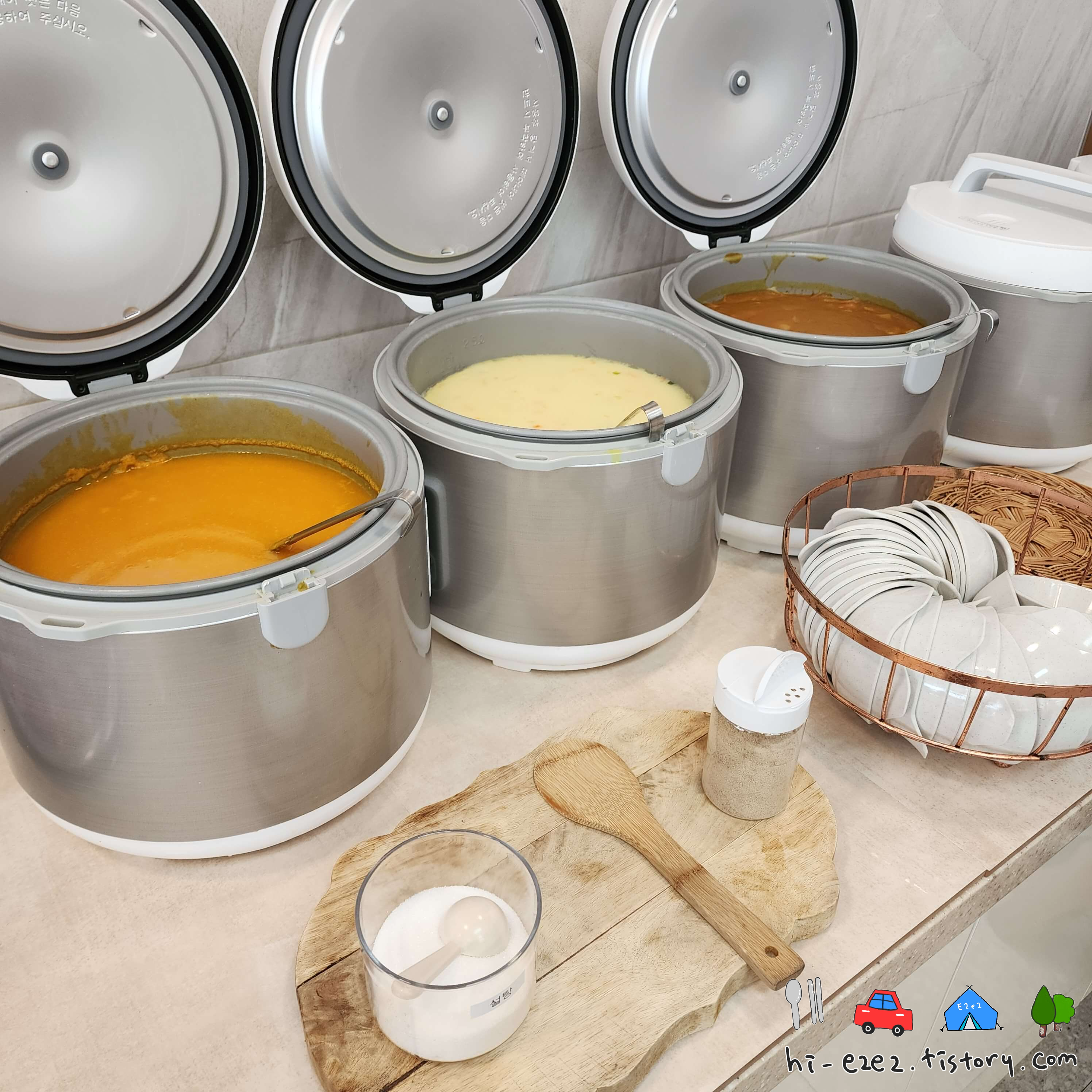 죽, 스프, 카레도 준비되어 있고 국도 따로 마련되어 있었어요ㅎㅎ