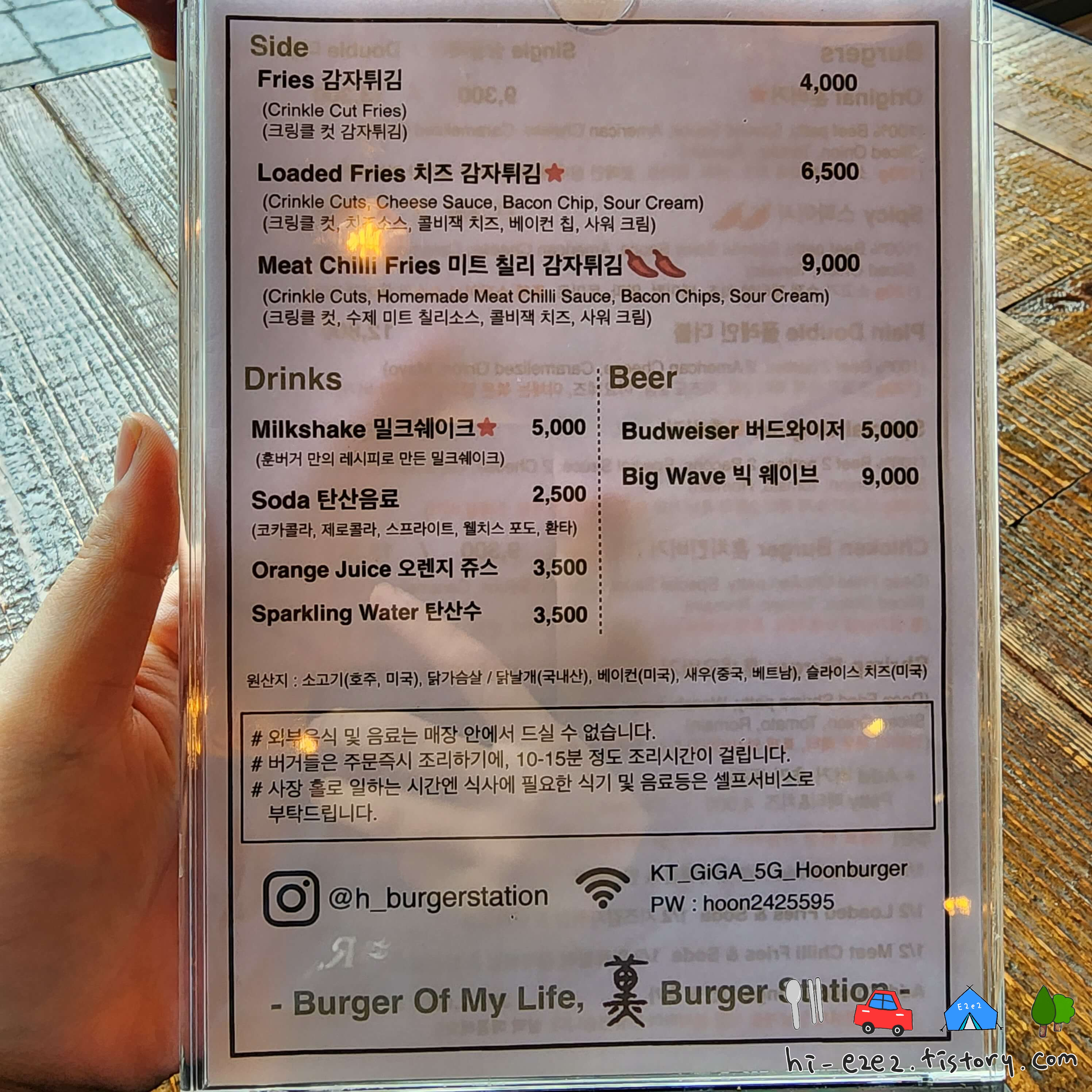 ::훈버거스테이션 메뉴판::