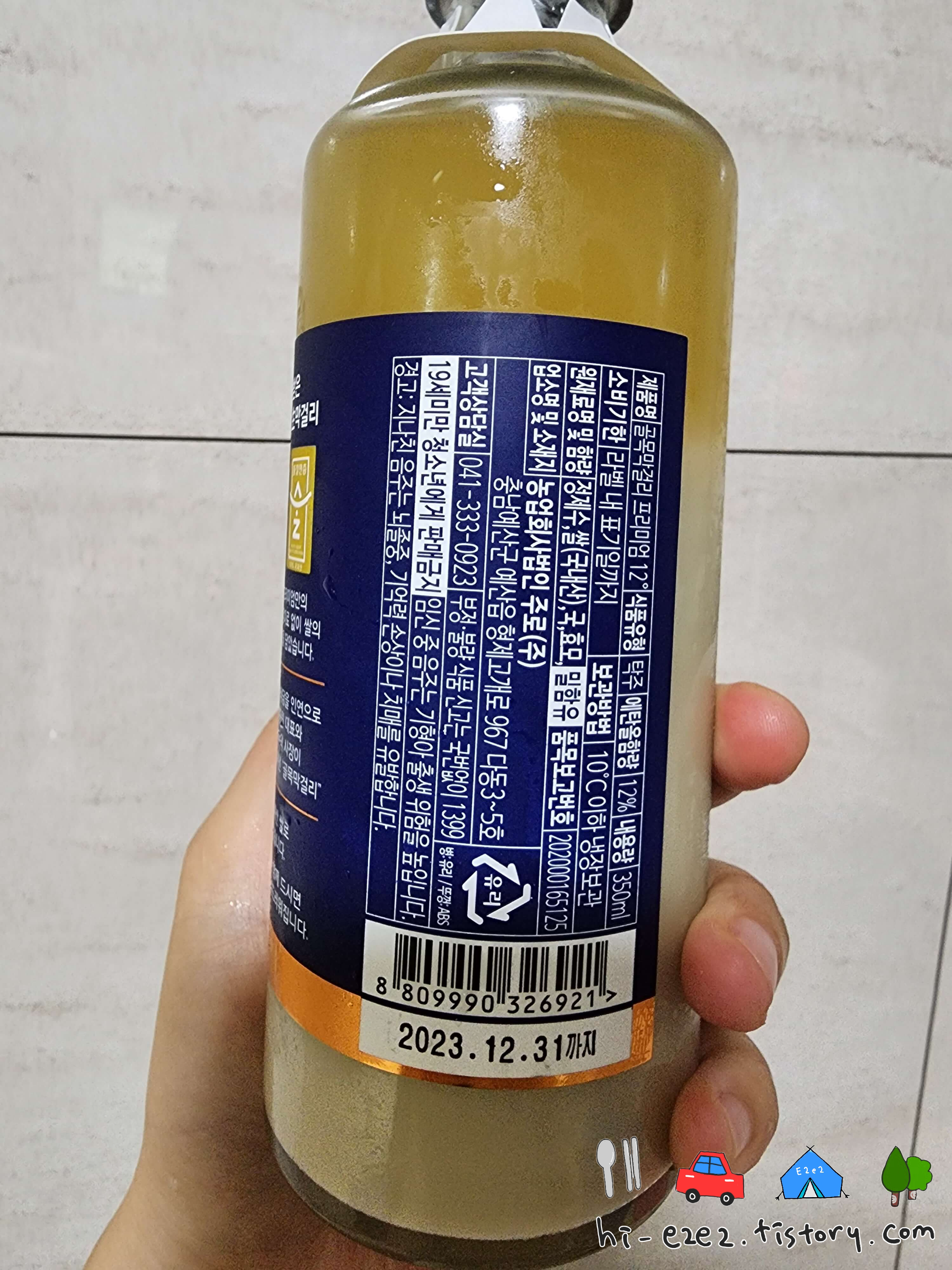 350ml에 알콜도수는 12%! 막걸리치고 조금 쎈 편이다.
