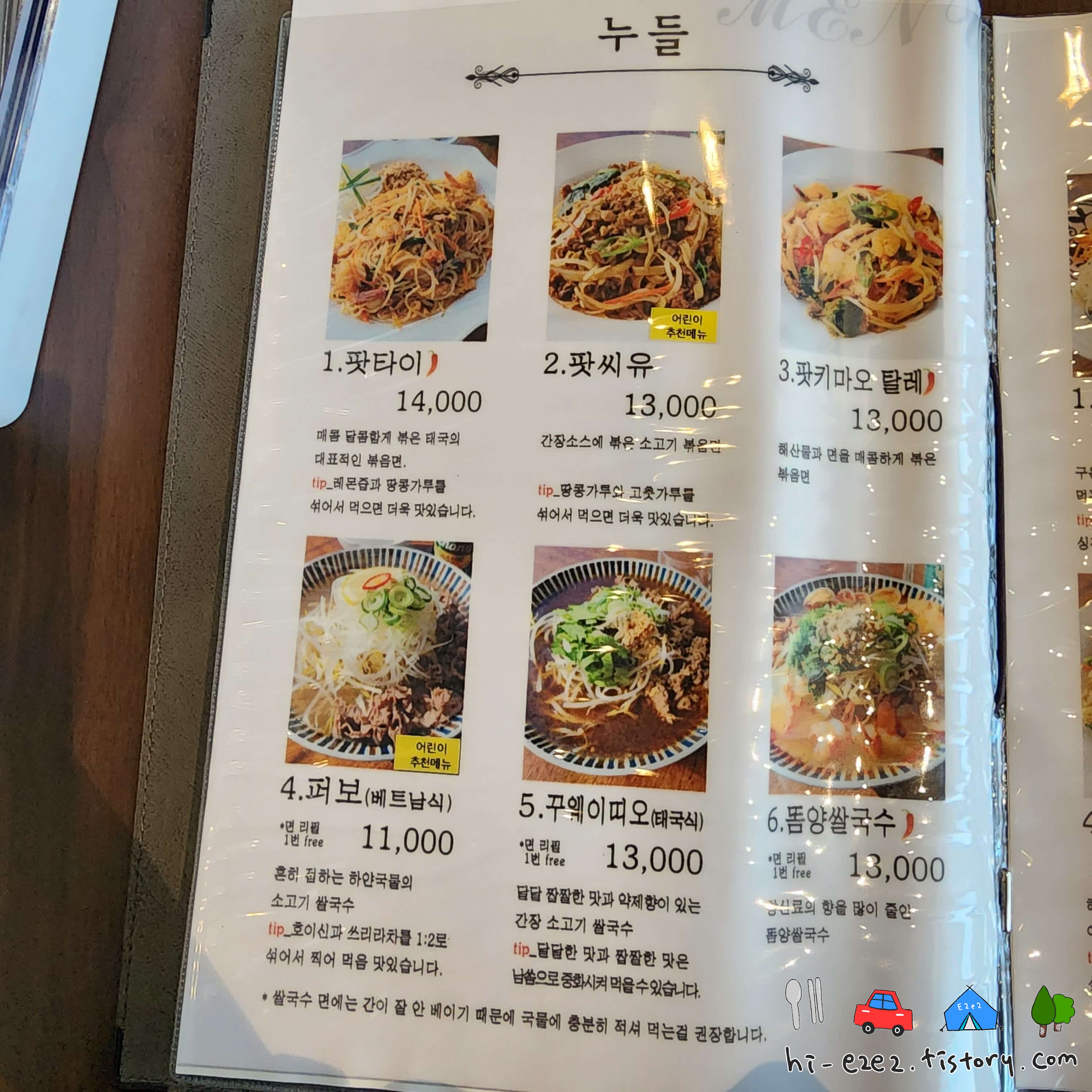 바깥에 입간판으로 어떤 메뉴가 있는지 사진으로 알 수 있어요! 태국음식을 도전해보려고 하시는 분들도 앞에 서서 보고 들어올 수 있을 것 같네요~