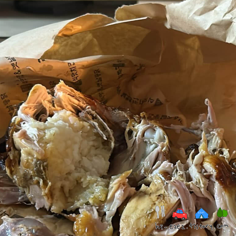 이렇게 닭 안에 찹쌀밥이 들어있어서 식사 못하고 술 마셔도 좋은 안주입니다ㅋㅋㅋ