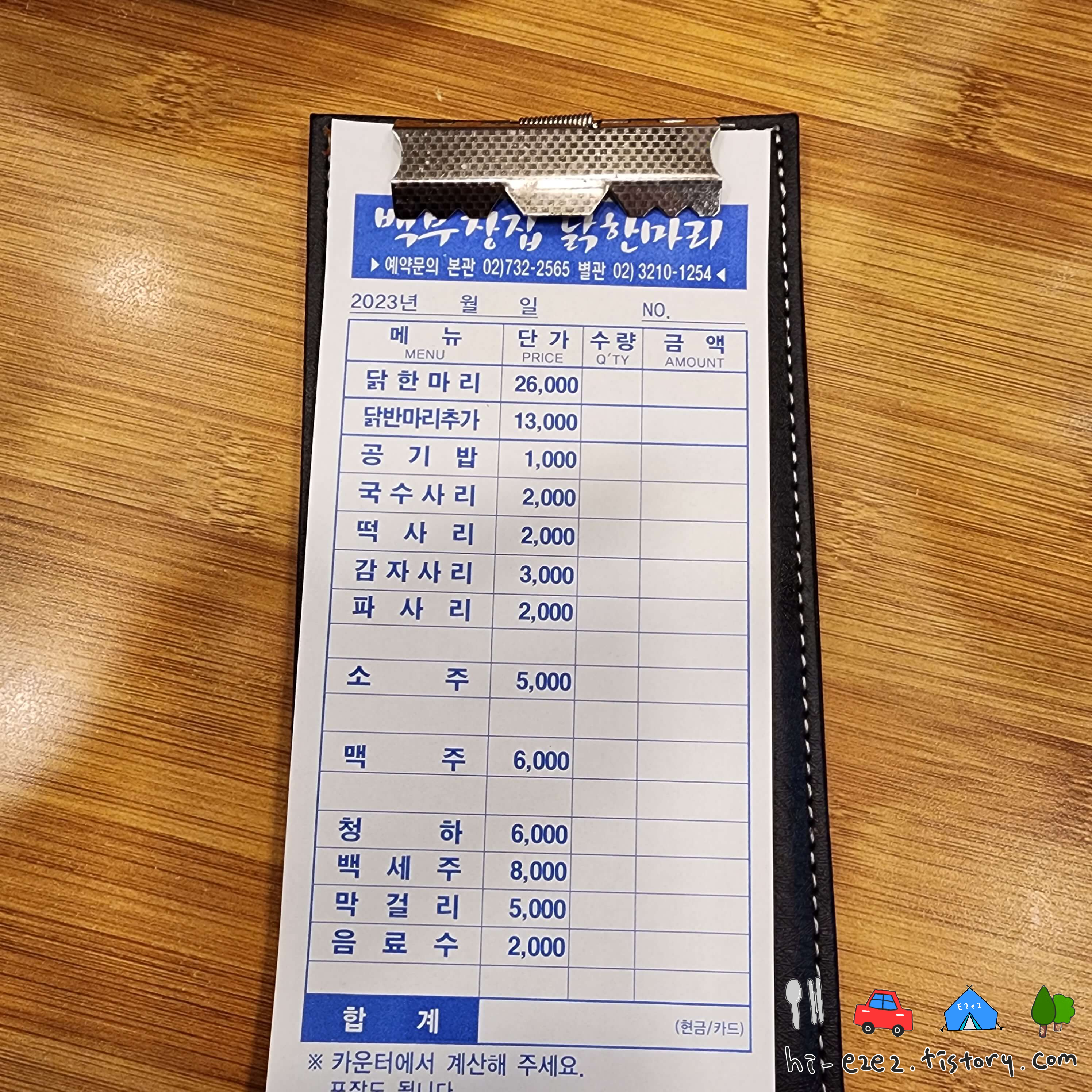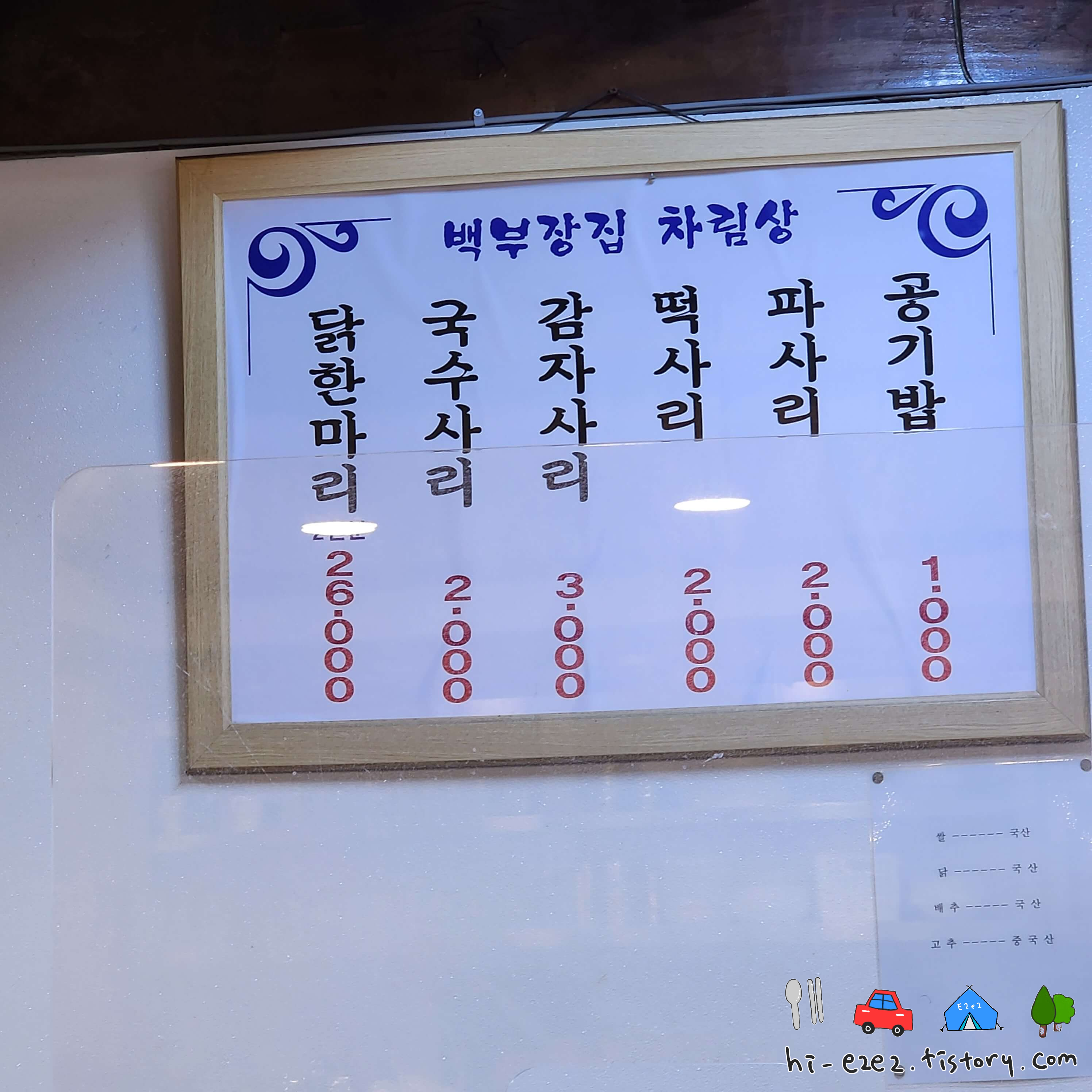 ::백부장집 닭한마리 메뉴판::