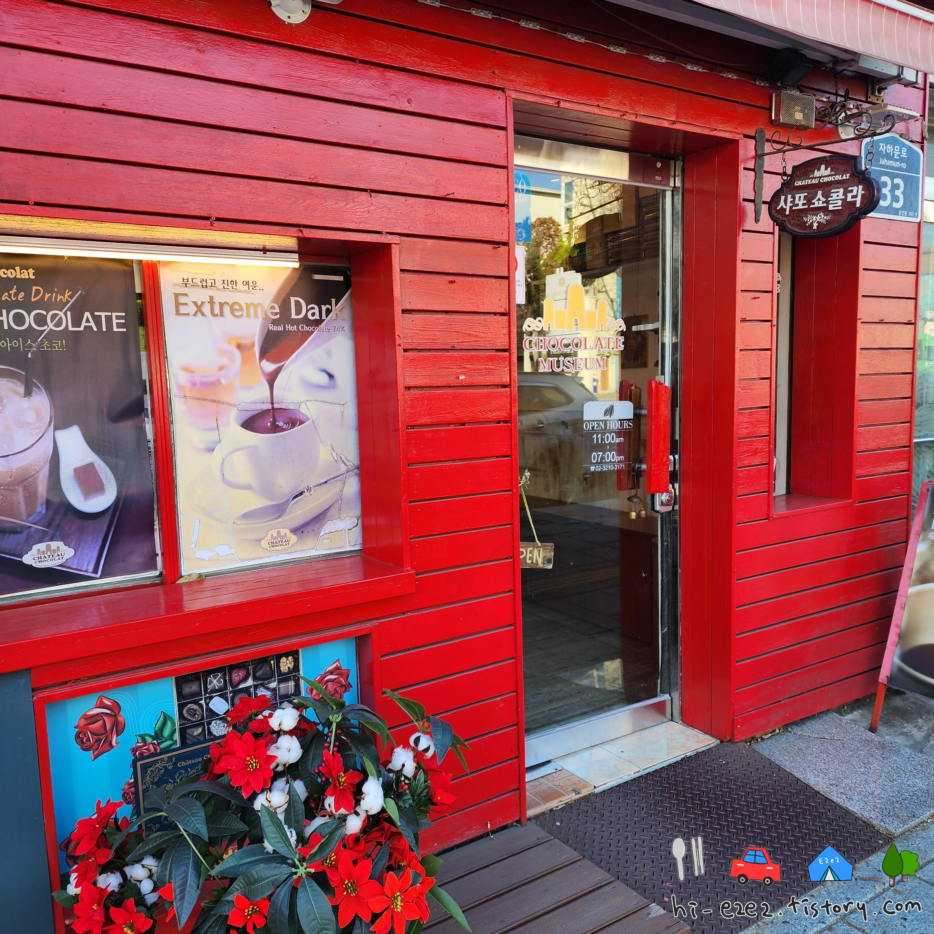 빨간 상자처럼 꾸며진 샤또쇼콜라 외관입니다ㅎㅎ