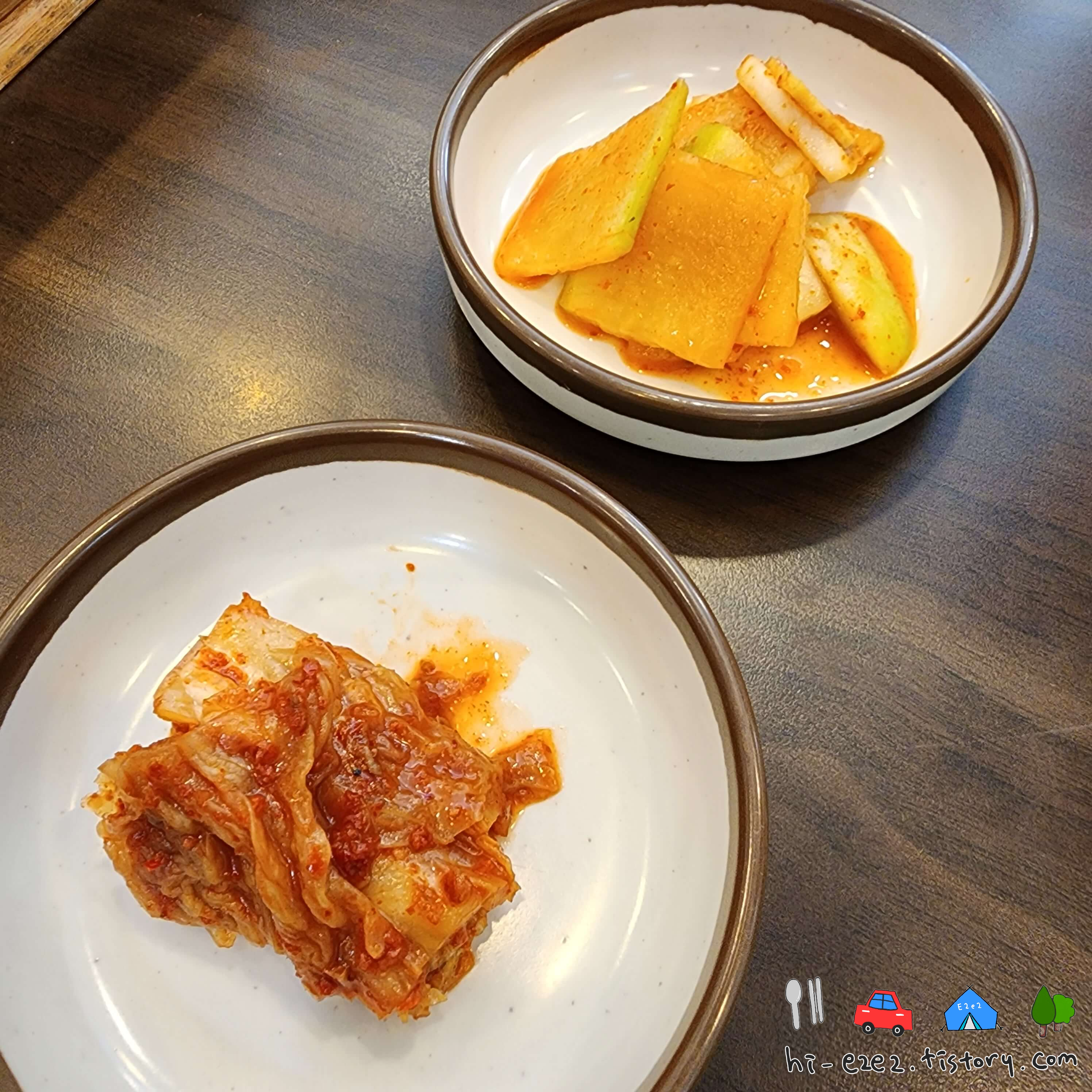 김치와 무김치를 밑반찬으로 내어주십니다ㅎㅎ