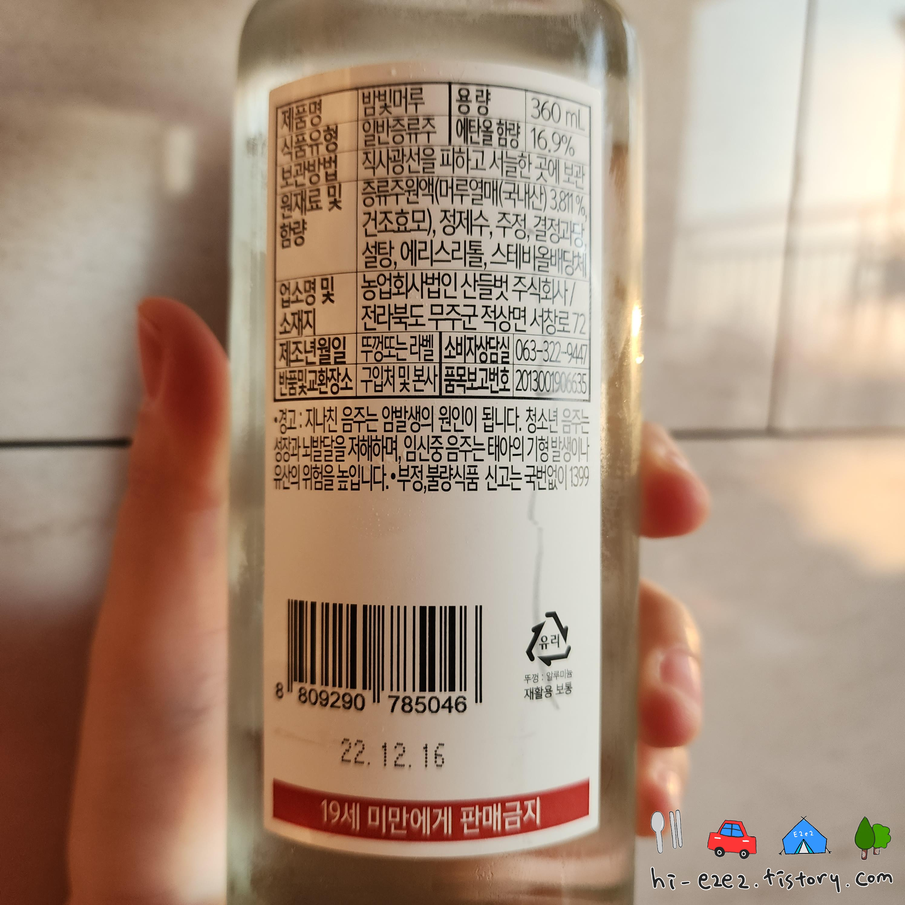 360ML에 16.9% 도수를 가지고 있네요~ 전통주지만 많은 소비자를 고려해 소주와 비슷한 도수를 가져가는 것 같아요!