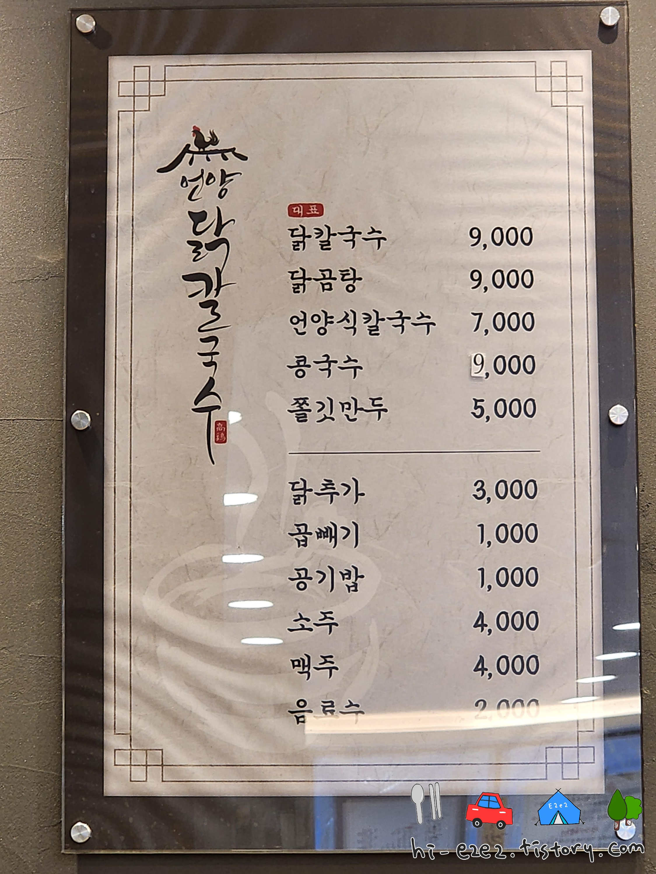 닭칼국수, 닭곰탕, 언양식칼국수, 콩국수, 만두 이렇게 총 5가지 메뉴만 판매중이시더라고요ㅎㅎ