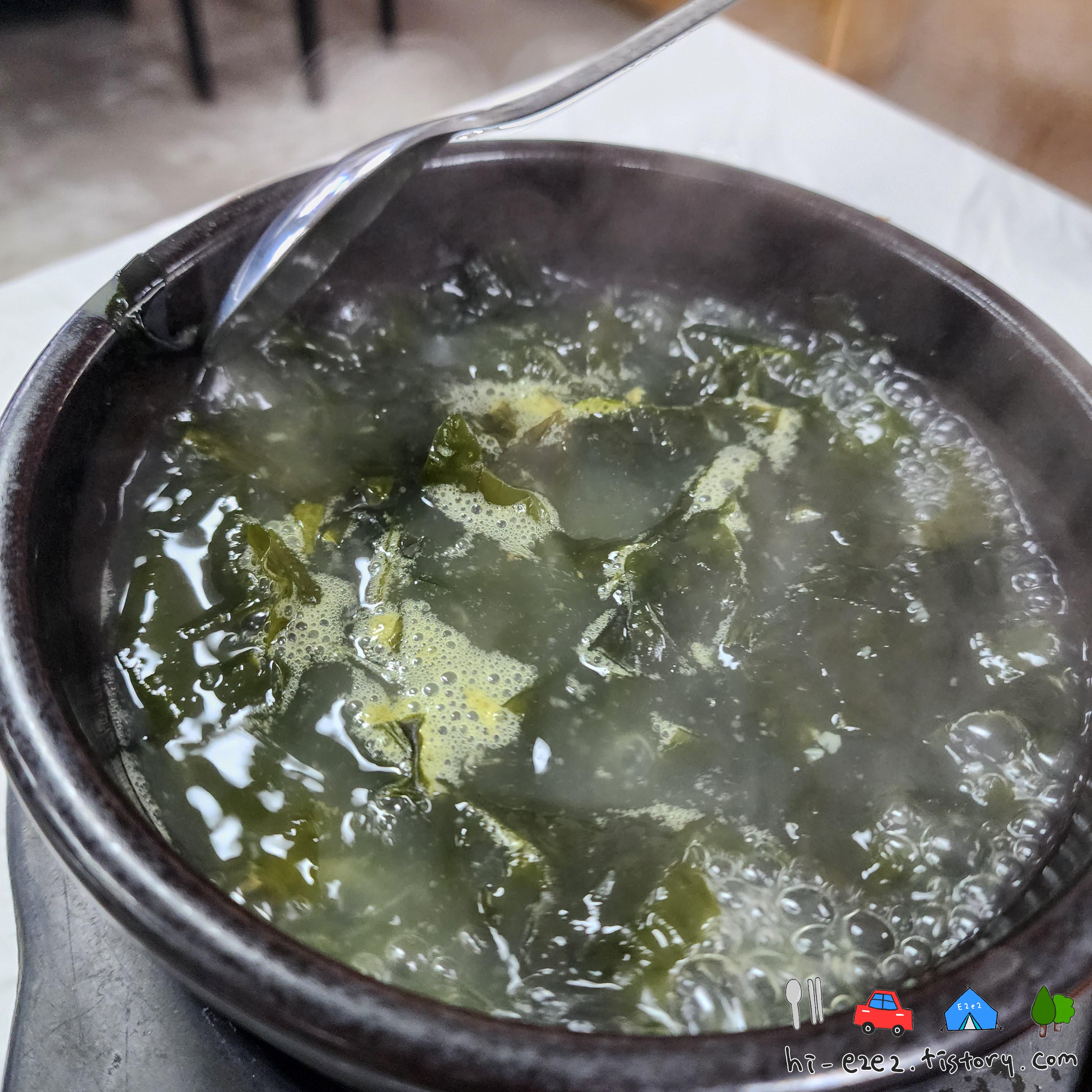그리고 미역국을 내주시는데 맛은 쏘쏘... 아무것도 안 든 미역국이라 맹물맛이더라고요;;ㅎㅎ