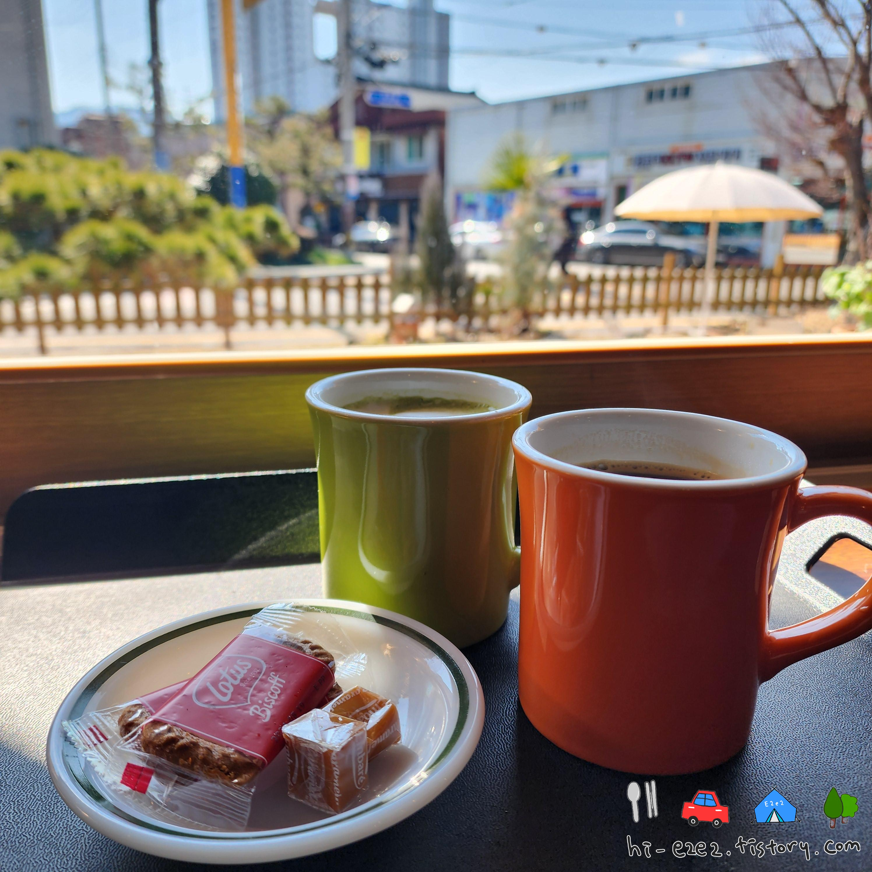 커피 시키면 비스코프와 카라멜을 서비스로 주신답니다ㅎㅎ