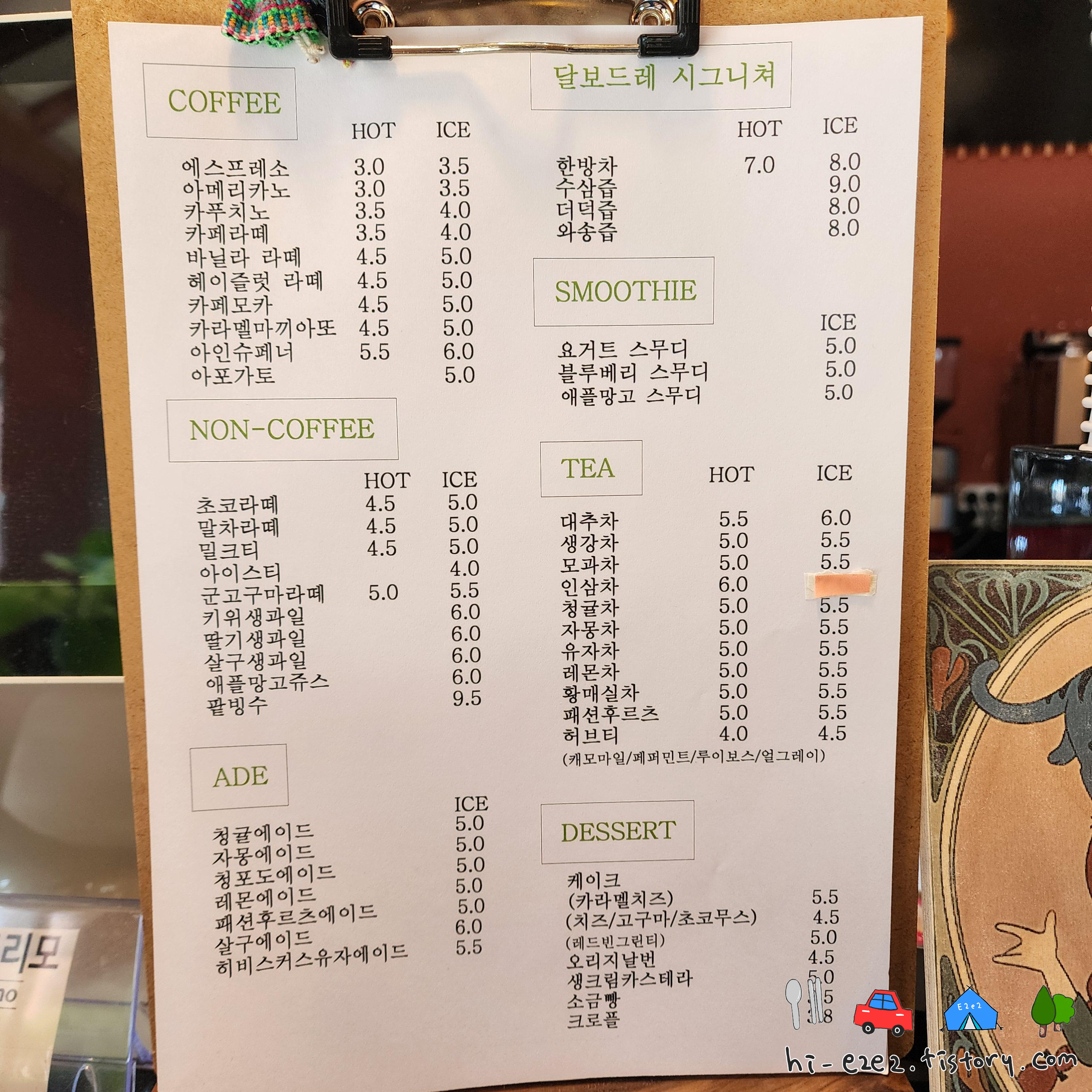 커피 외에도 다양한 음료를 판매중이라서 좋았던 달보드레!