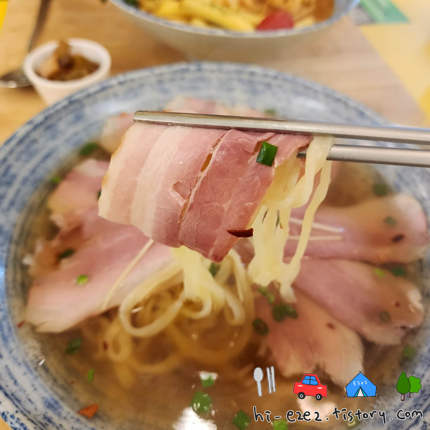 깔끔한 국물 베이스에 베이컨을 얇게 썰어 올린 음식이더라고요ㅎㅎ