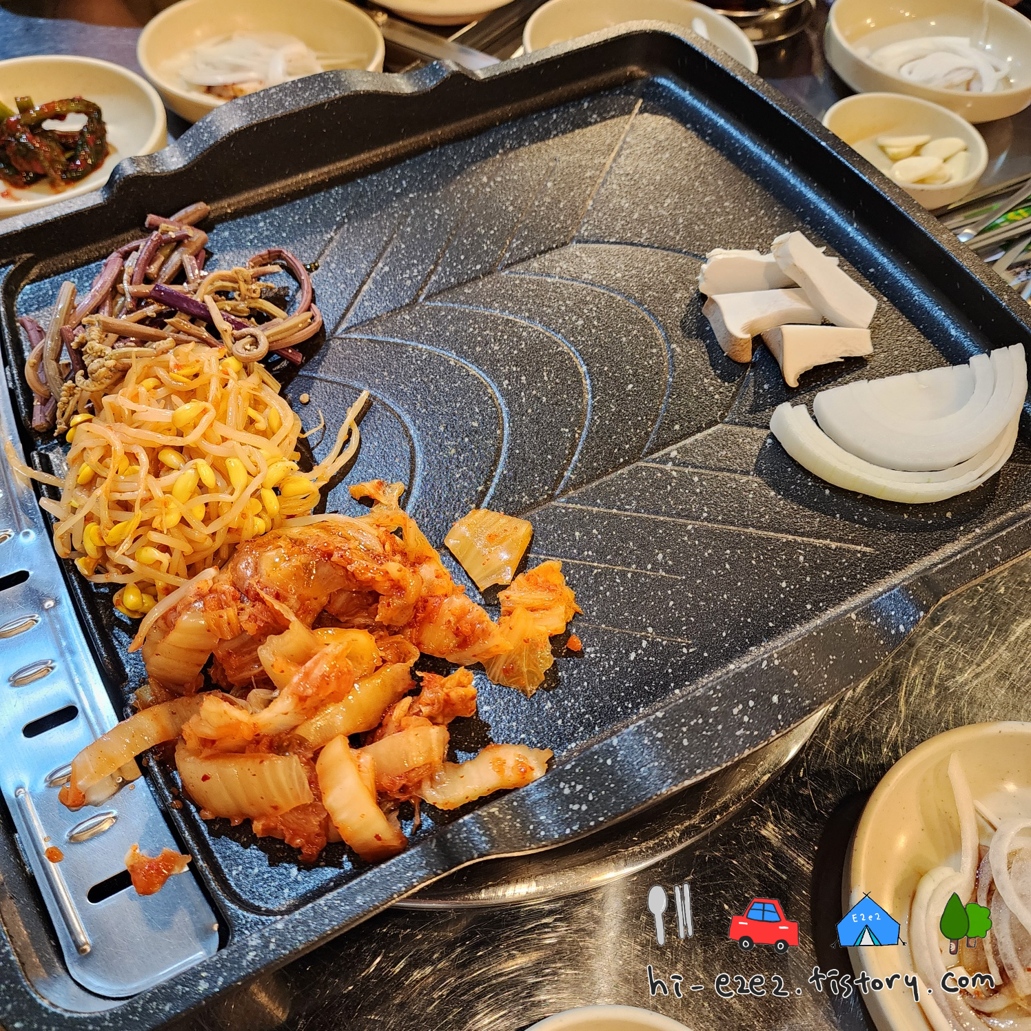신안오돌뼈 이용방법에서 본 것처럼 미리 김치랑 콩나물, 고사리, 양파, 버섯 굽기~