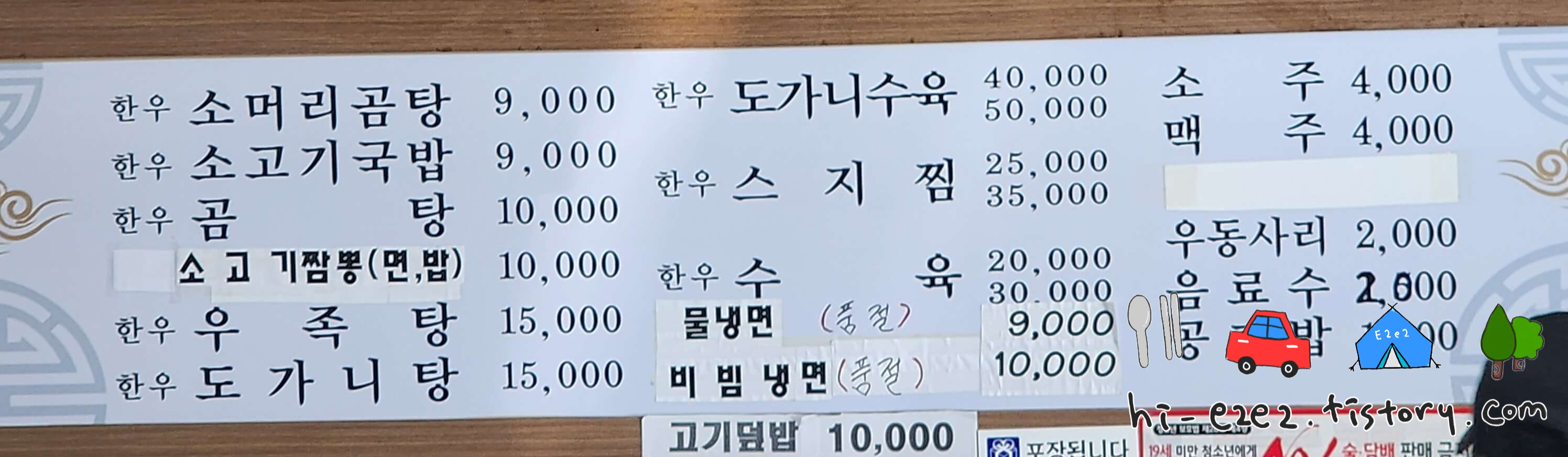 성내곰탕 메뉴판
