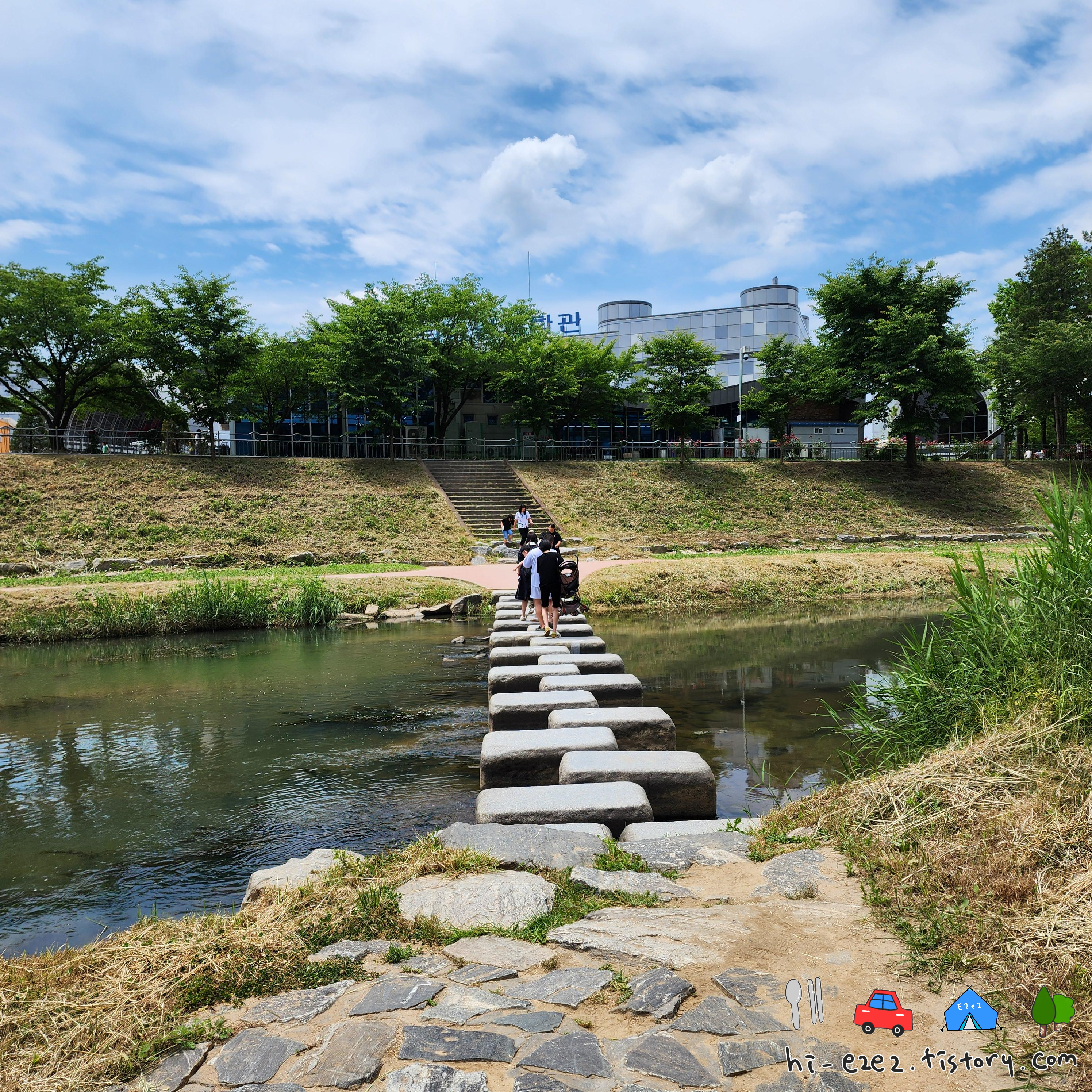 하천에 놓여진 징검다리를 건너가야한답니다ㅎㅎ