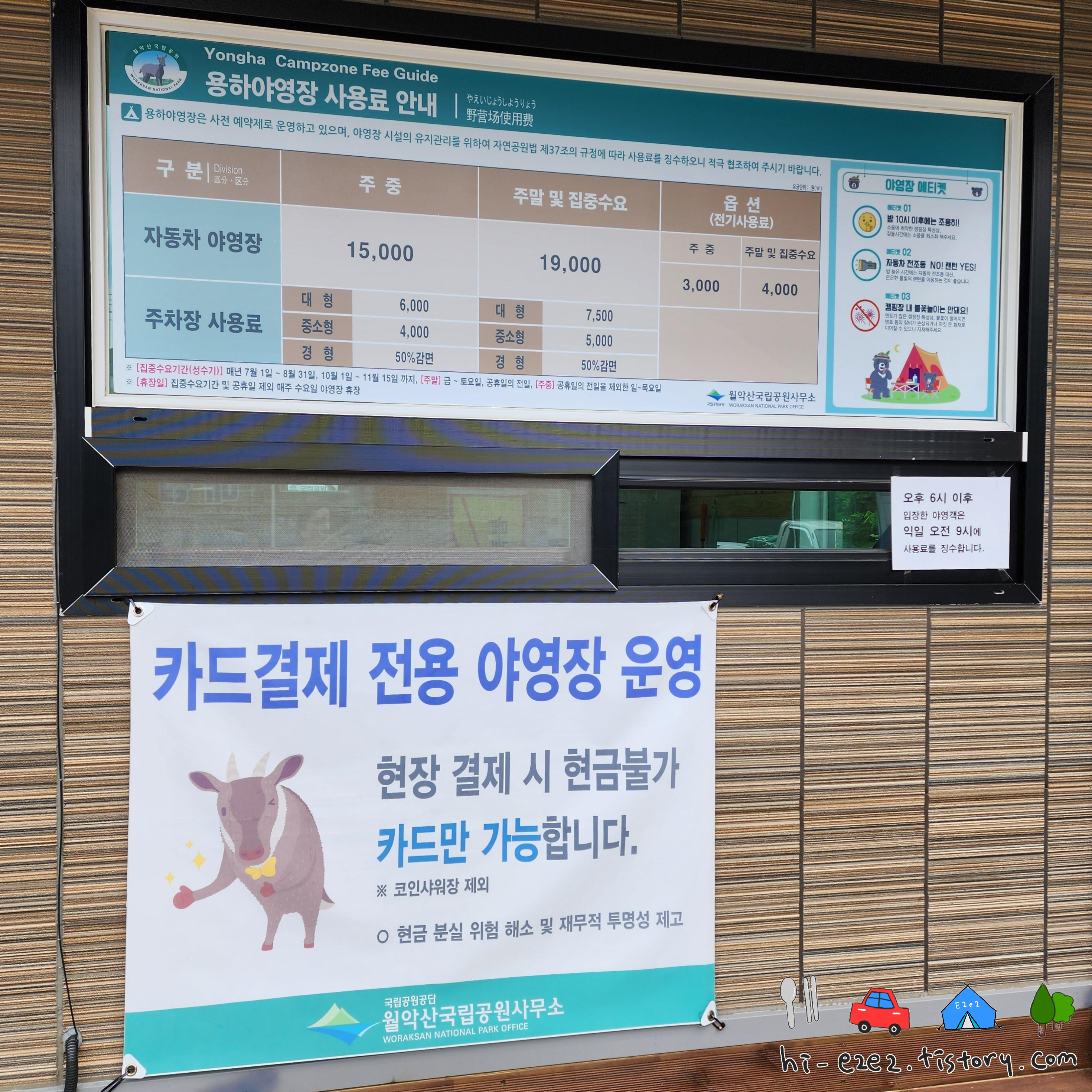 야영장을 사용하시면 주차요금은 면제되고, 전기 사용료는 별도로 지불하셔야합니다ㅎㅎ