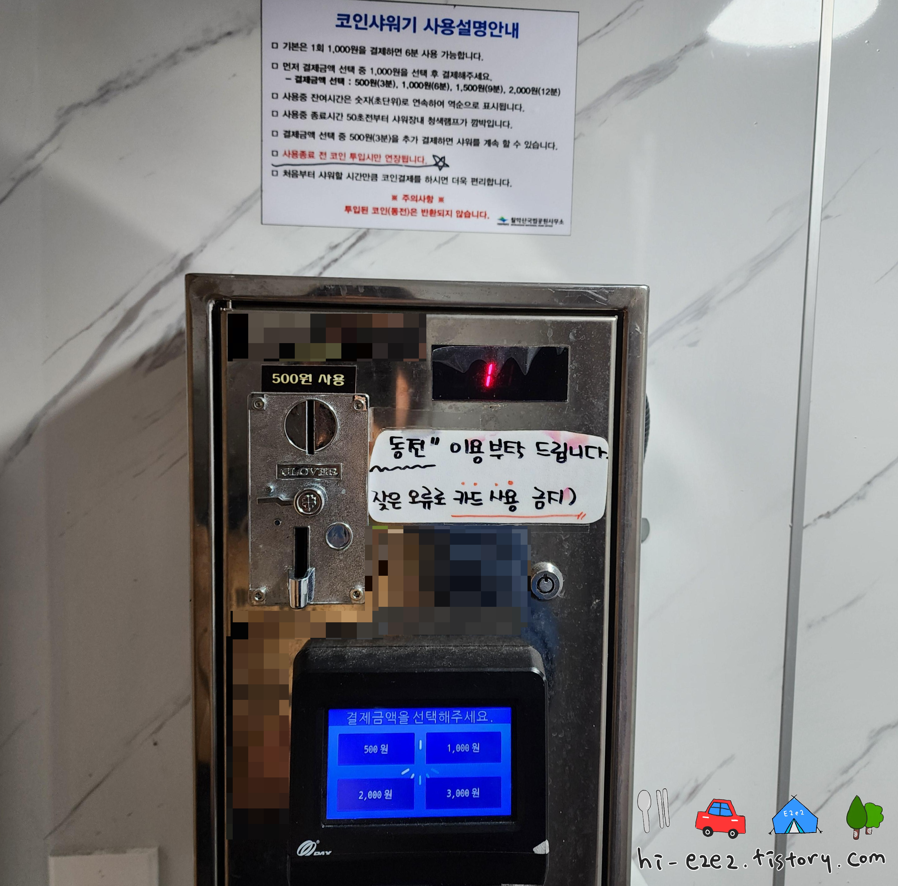 샤워장은 총 2개고 안에 결제할 수 있는 기계가 있는데요~